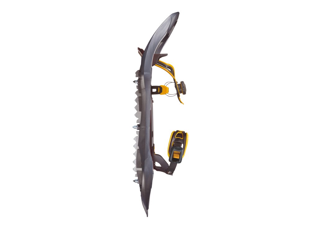 - 4D – Tři hladiny kontaktu se sněhem zabezpečují plnou funkčnost sněžnice bez ohledu na druh sněhu a v traverzech budeš mít jistotu. Na tvrdém sněhu a ledu jsou v kontaktu jen ostré hroty, ale pokud jdeš po ufoukaném sněhu, začínají zabírat i vylisované příčníky a sněžnice nepodkluzují. V měkkém zabírá celá plocha sněžnice včetně obloukového okraje a neboří se, ani nepodkluzují. Při sestupu je 4D dizajn pohodlný, protože pata klesne pod úroveň rámu sněžnice a chodidlo je tak v pohodlnějším úhlu.