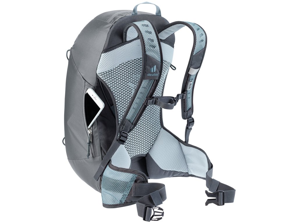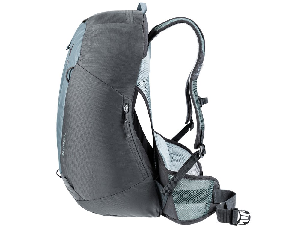 Super lehký, pohodlný a dobře větraný batoh pro turistky, to je rozhodně AC Lite 21 SL od deuteru. Řada batohů AC Lite je jako stvořená pro jednodenní túry v přírodě, oceníte především jejich lehkost, pohodlí a prodyšnost. Inovativní zádový systém Aircomfort slibuje maximální ventilaci, stabilní zádový rám je z pružné oceli. Síťovina v zádech propouští vzduch, takže se budete méně potit. Dvoucestný hrudní popruh zajistí dokonalé upevnění. Ergonomický polstrovaný bederní pás je vzdušný a krásně na bedrech sedí a netlačí. Ve spojení s kvalitními recyklovanými materiály, dává řada AC Lite tomuto batohu vynikající poměr pohodlí a hmotnosti a zároveň respektuje životní prostředí. Navíc Slim Line verze je jako dělaná na štíhlejší a kratší ženská záda. Klasické střihy totiž mohou sklouzávat.