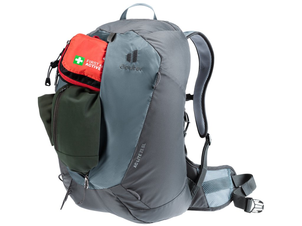 V prostorné hlavní komoře batohu AC Lite 21 SL snadno uložíte všechny potřebné věci. Kromě centrální kapsy má praktickou kapsu na mobil či jiné cennosti a elektroniku. Na bocích se nacházejí síťované kapsy na láhve s vodou, zatímco poutka umožňují připevnit helmu, trekové hole, nebo bundu. Na ramenním popruhu najdete praktické uchycení na brýle. Díky těmto promyšleným detailům je AC Lite 21 SL ideálním společníkem pro turistiku všeho druhu.