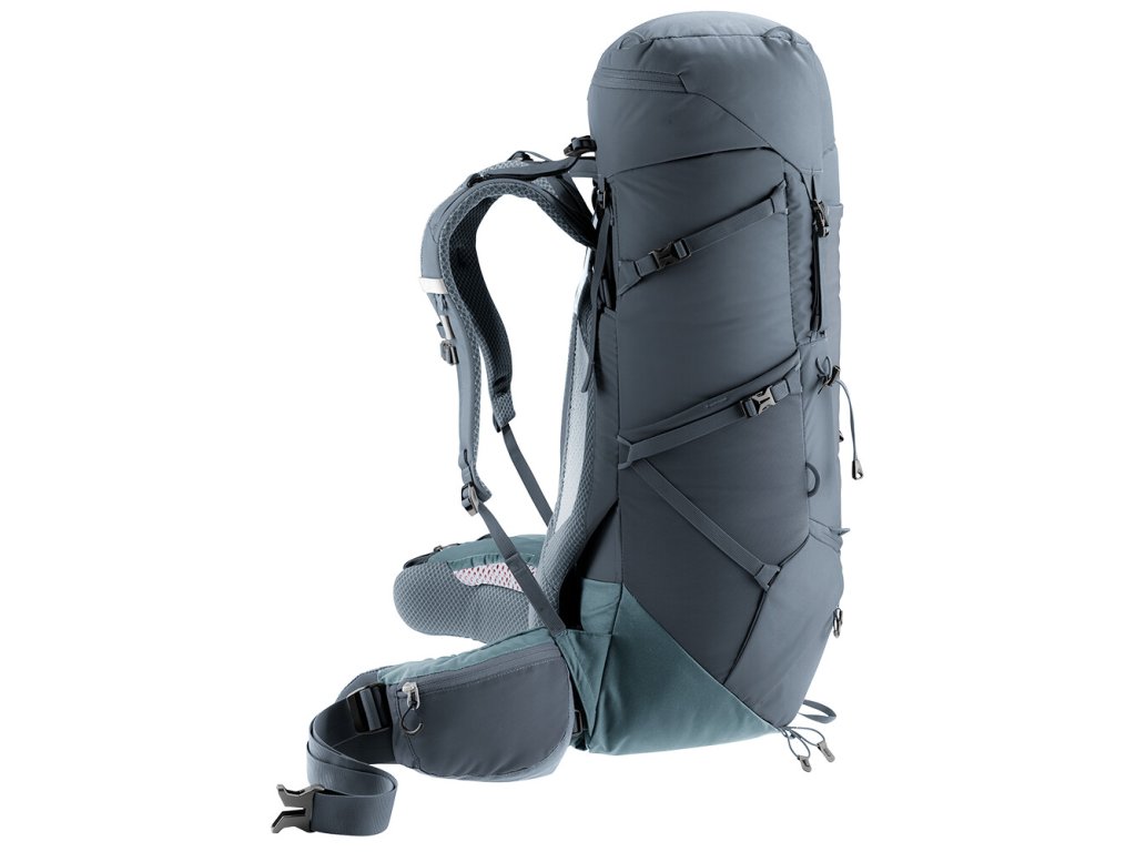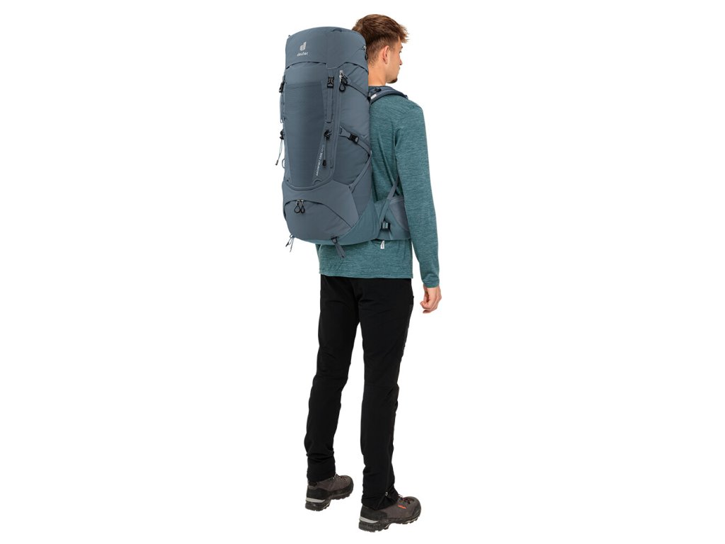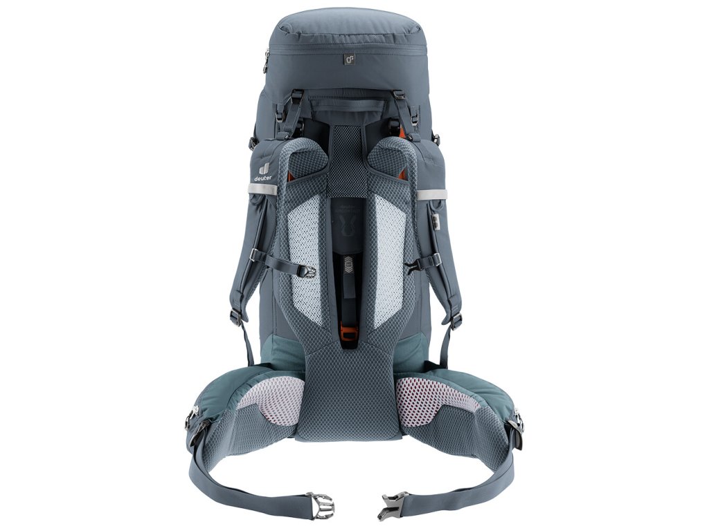 Nejjednodušším způsobem nošení těžkých nákladů je ten, kdy batoh a nositel splynou v jedno. A v tom spočívá mimořádné pohodlí modelové řady Aircontact Core. U zádového systému Aircontact se systém tělesného kontaktu přivádí váhu blízko k tělu, tedy blízko k těžišti. Pohyblivý ergonomický bederní pás, který dokonale obepne vaše boky, batoh zastabilizuje. Výsledkem je plná kontrola nad zabaleným obsahem a efektivní přenos nákladu. Dokonalému odvětrání přispívá užitá síťovina Air Spacer a velký ventilační kanál usazený mezi polštáře ze speciální pěny s dutou komorou, díky čemuž se podle testů zapotíte o celých 15 % méně než u standardního kompaktního zádového systému. V součinnosti s ergonomicky tvarovanými ramenními popruhy ActiveFit a nastavitelným hrudním popruhem se fakticky Aircontact Core 40+10 stane vašim spolehlivým parťákem na cesty.