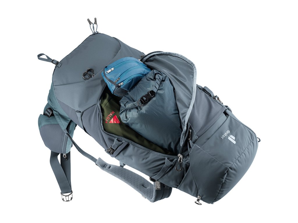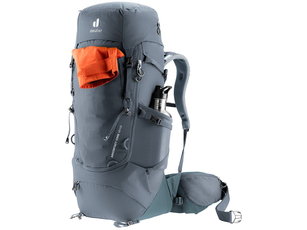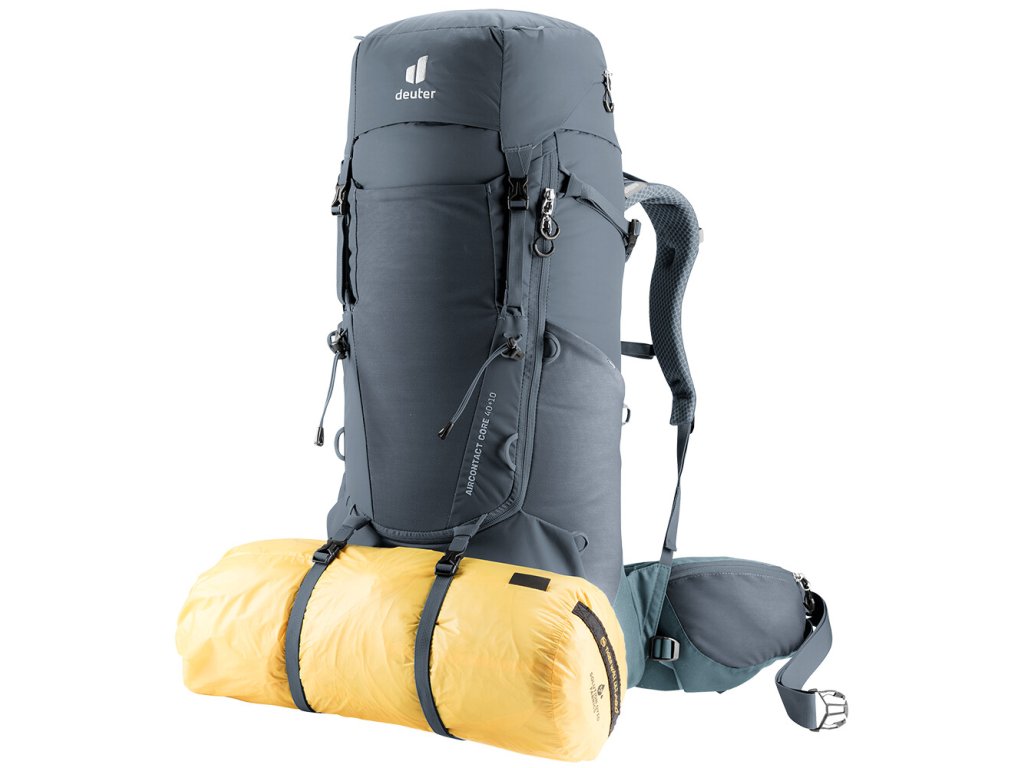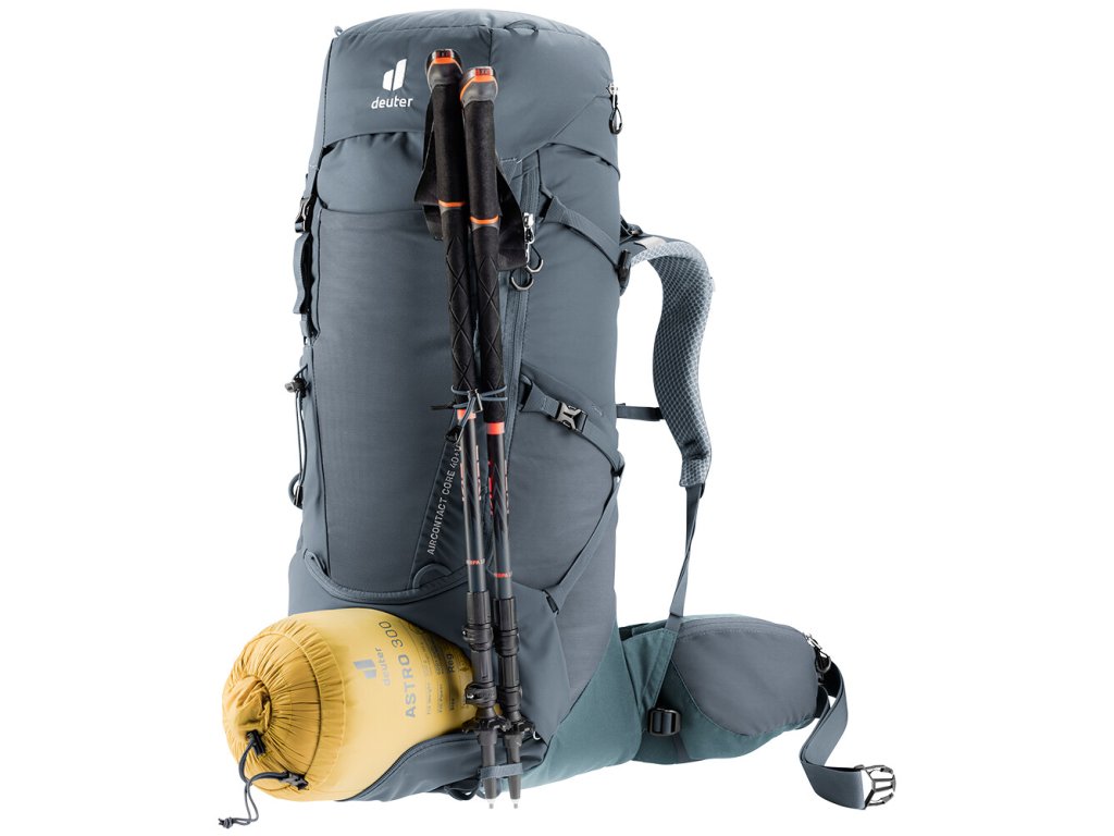 Batoh Aircontact Core 40+10 disponuje spoustou kapes a popruhů. Hlavní komora je dostupná shora pod odnímatelným víkem s kapsou, pomocí něhož si můžete prakticky zvětšit objem batohu až o 10 litrů. Uvnitř se nachází kapsa na hydrovak nebo mokré prádlo. Nechybí skrytá kapsa na cennosti a elektroniku. Ve spodní části je velká, zipem oddělená kapsa na spacák a na bocích oceníte dvě pružné kapsy, třeba na lahev s vodou. Vepředu je velká strečová kapsa, kam třeba rychle odložíte bundu. Dvě zipové kapsy najdete na bederním popruhu. Pomocí přidaných popruhů připevníte karimatku, očkama trekingové hole, vychytávku v podobě očka na brýle najdete na ramenním popruhu. Ještě dobalte dobré jídlo, funkční prádlo a hurá ven, hurá na výlet!