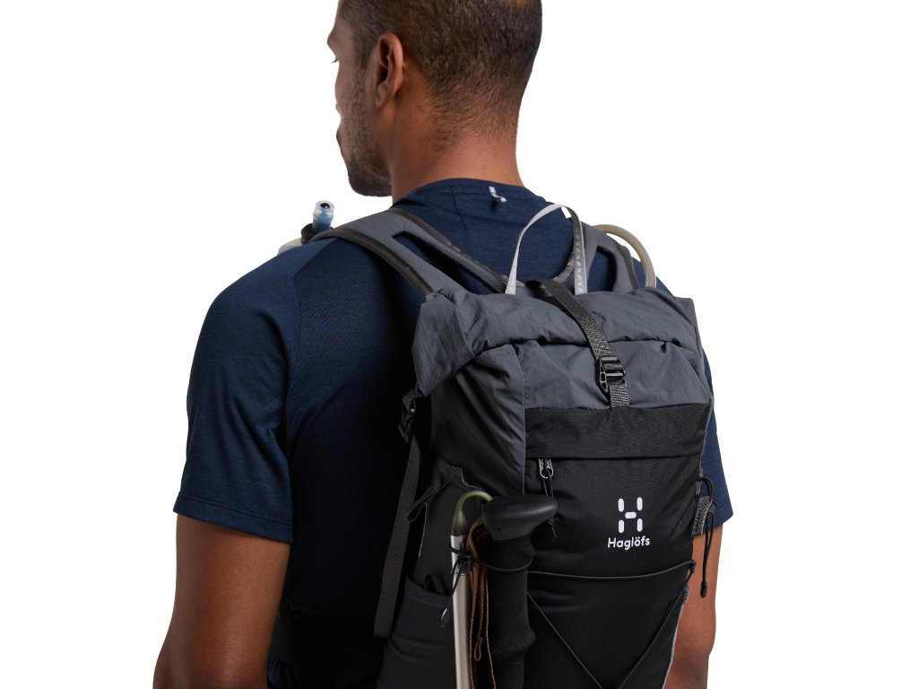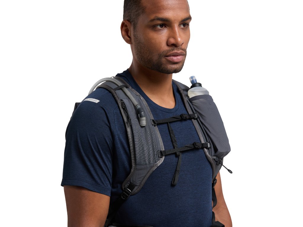Skvěle sedí na zádech, neomezuje v pohybu a přitom poskytuje dostatečný prostor na sbalení všech nutností. Navíc je batoh doplněn o hydroflask měkkou láhev na pití pro možnost hydratace za chůze.