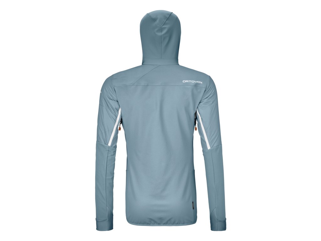 Hybridní dámská bunda ORTOVOX SWISSWOOL COL BECCHEI HYBRID JACKET W je ušita z velmi odolného a strečového softshellového materiálu MERINO NATURTEC LIGHT, který má vysokou prodyšnost, rychle schne a má vysokou mechanickou odolnost. Vlna na vnitřní straně absorbuje vlhkost do svého jádra, takže je na povrchu suchá a hřeje i za mokra. Pro zajištění maximální ochrany proti větru a chladu jsou do přední části hrudníku a horní části ramen vloženy izolační vložky SWISSWOOL® který je z venku pokryt pružným a větruvzdorným materiálem TEC STRETCH.