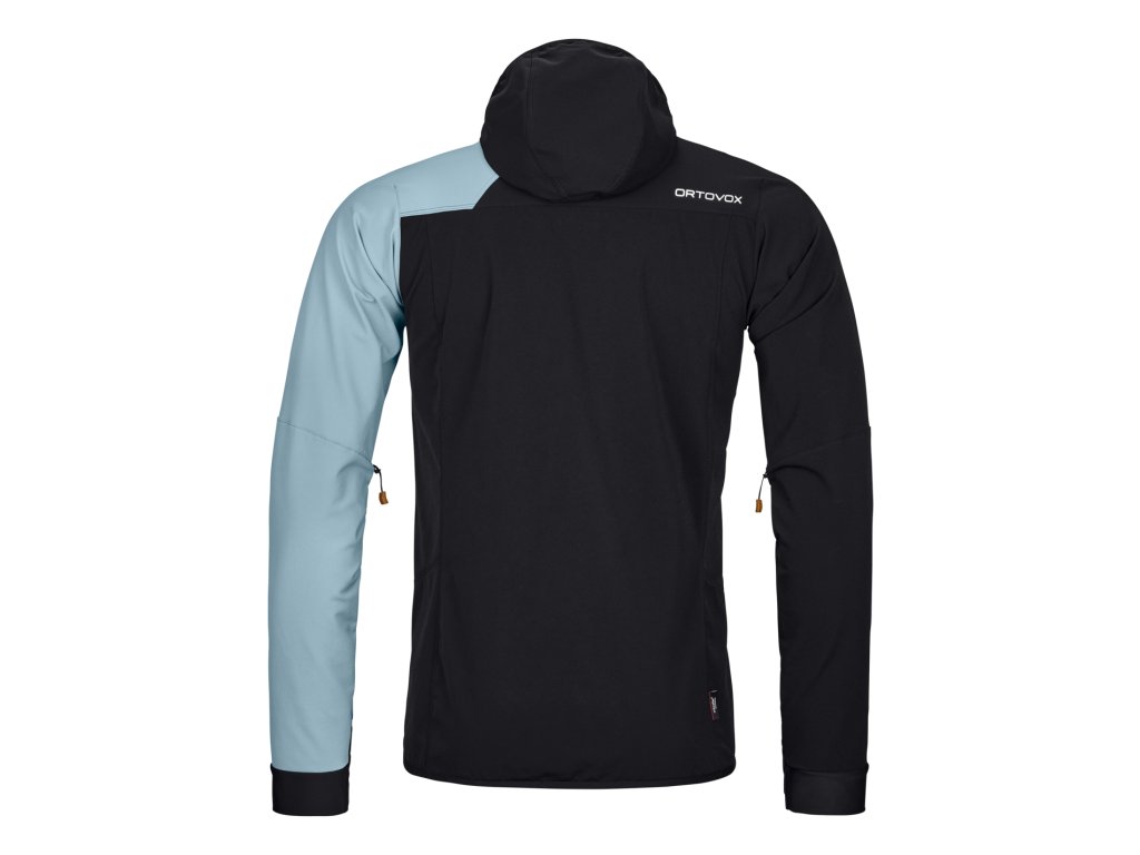 Technická pánská softshellová bunda ORTOVOX COL BECCHEI JACKET M je z vnější strany tvořena velmi odolným a strečovým softshellovým materiálem MERINO NATURTEC LIGHT, který má vysokou prodyšnost, rychle schne a má vysokou mechanickou odolnost. Vlna na vnitřní straně absorbuje vlhkost do svého jádra, takže je na povrchu suchá a hřeje i za mokra. Na hrudi je speciální větruodolná membrána Shoeller® C_CHANGE. Bunda je lehká, pohodlná a odolná. Má prostornou kapuci a velké kapsy, do kterých se dostaneš i přes bederní pás batohu nebo sedací úvazek.