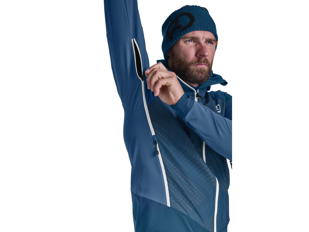 Lehká pánská softshellová bunda s vlnou na vnitřní straně a větruodolnou membránou v oblasti hrudníku. Je ideální pro skialpinismus a skitouring.