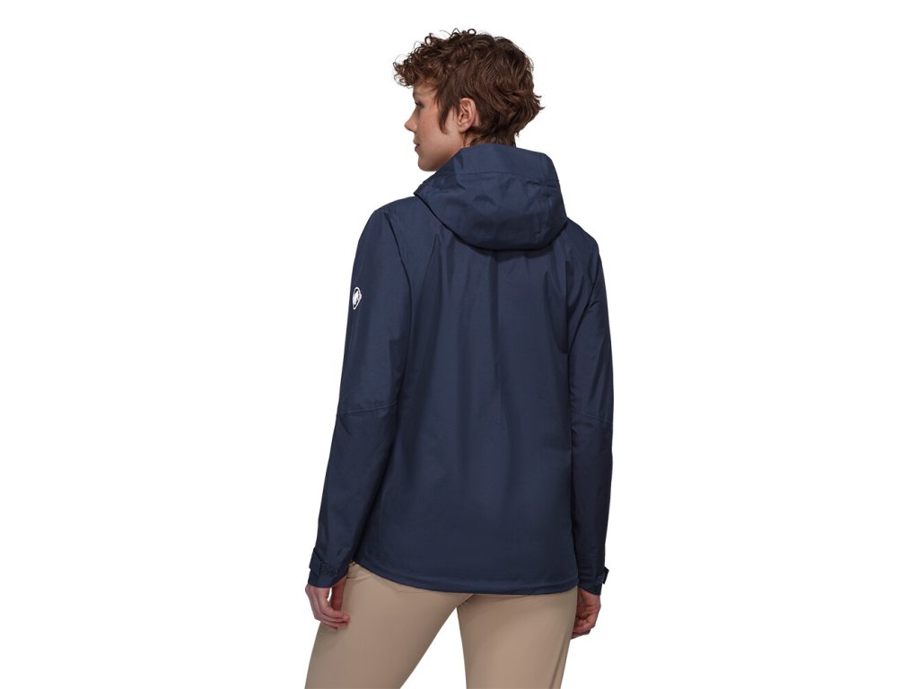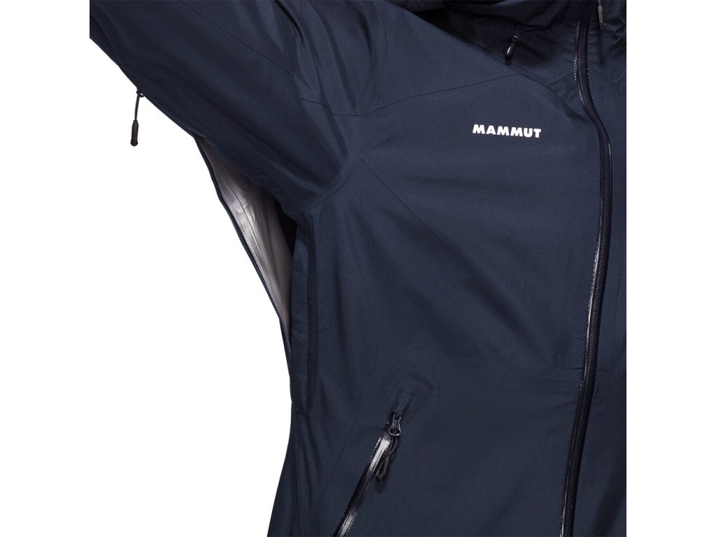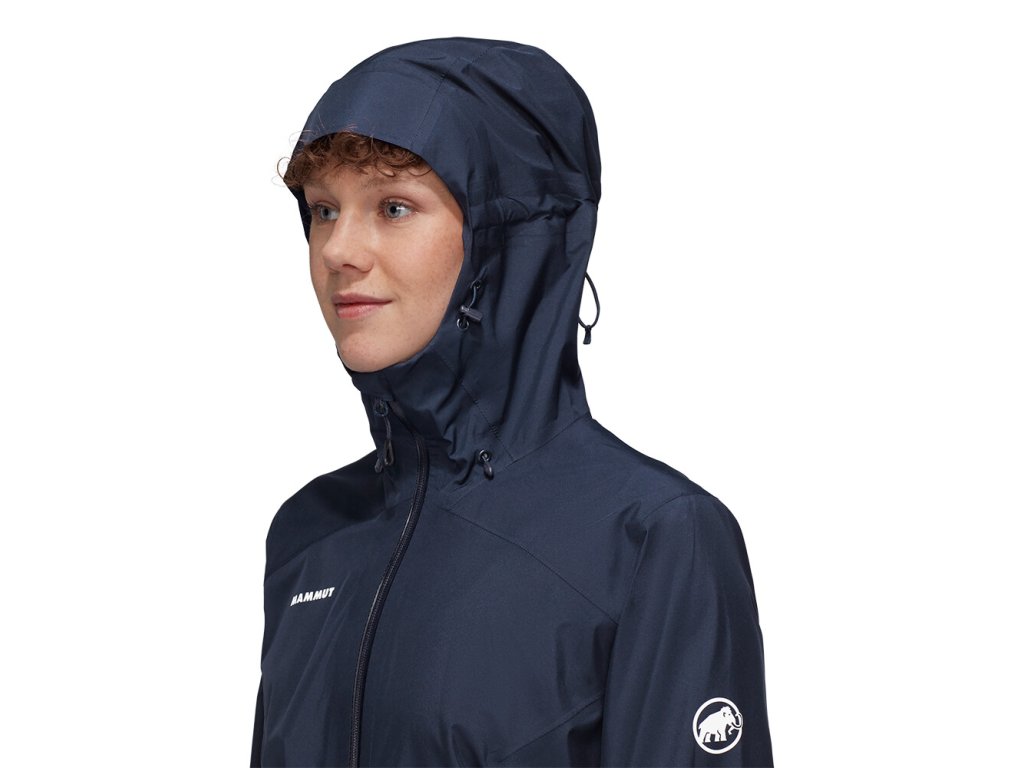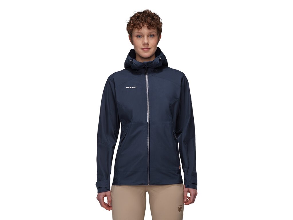 Dámská hardshellová bunda Convey Tour HS Hooded Jacket od švýcarské firmy Mammut potěší nízkou hmotností a vysokou odolností vůči větru a dešti.