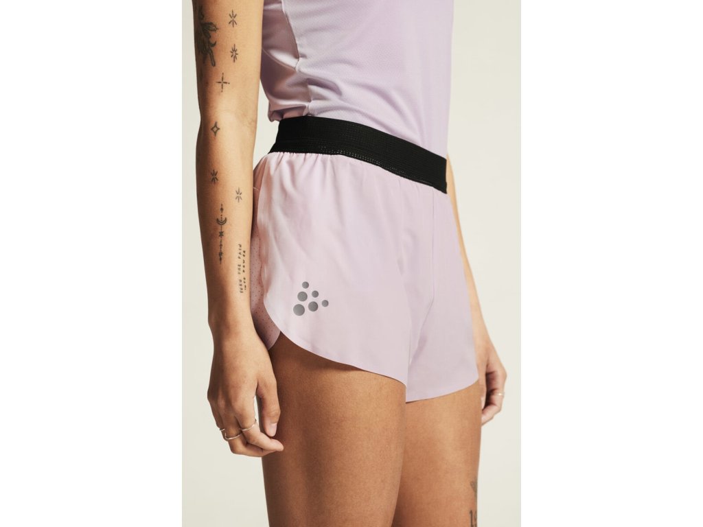 Krátké běžecké šortky pro dámy CRAFT PRO Hypervent Split 2 jsou vyrobeny z velmi lehkého a maximálně prodyšného materiálu. Skvěle se hodí na závody i trénink v teplém počasí.