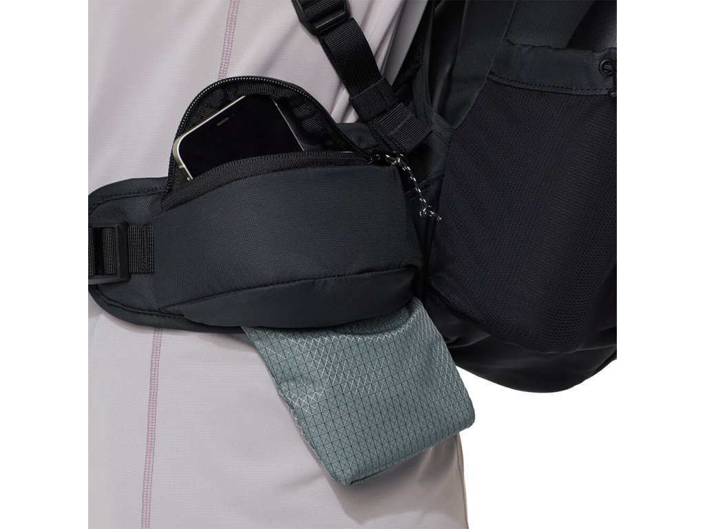 Lehký turistický batoh se síťovinou na zádech. Délka zad, popruhy i bederní pas jsou uzpůsobeny ženské anatomii. Integrovaná, odnímatelná pláštěnka. Kapsa na mobilní telefon na bederním pásu. Kompatibilní s hydratačním systémem.