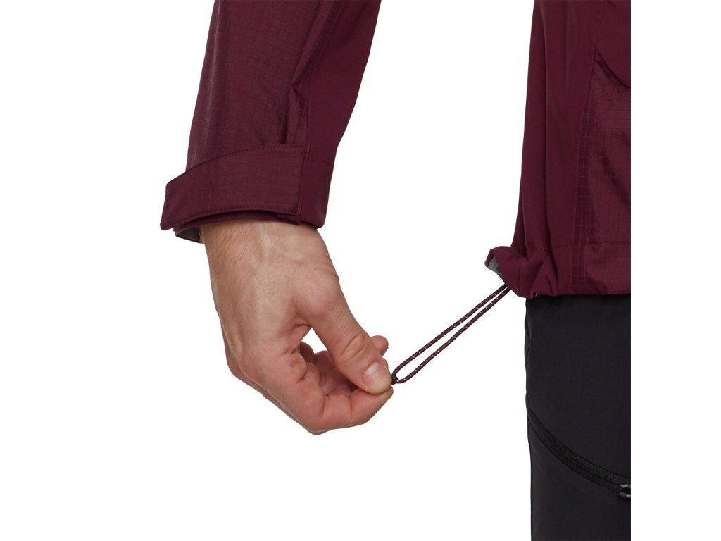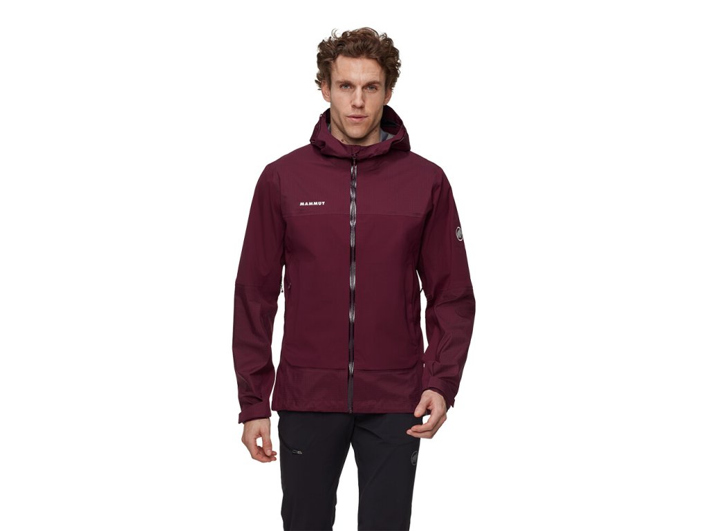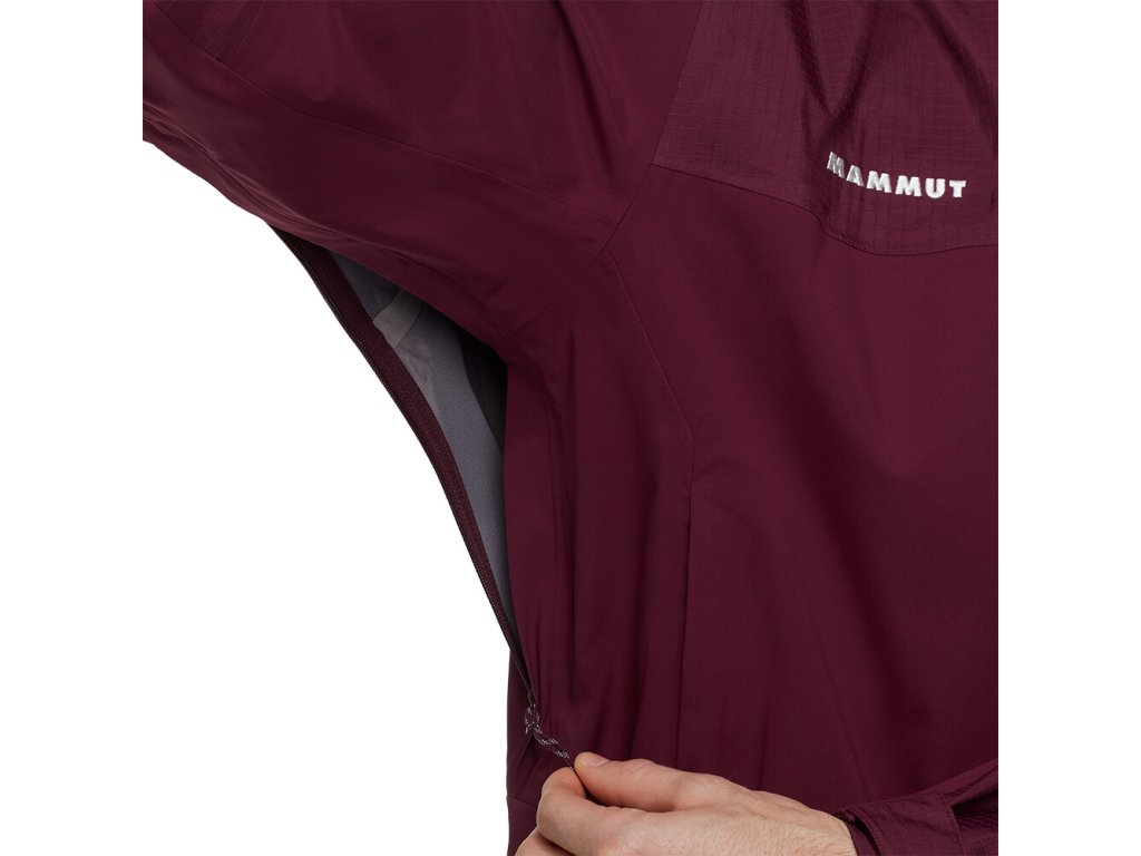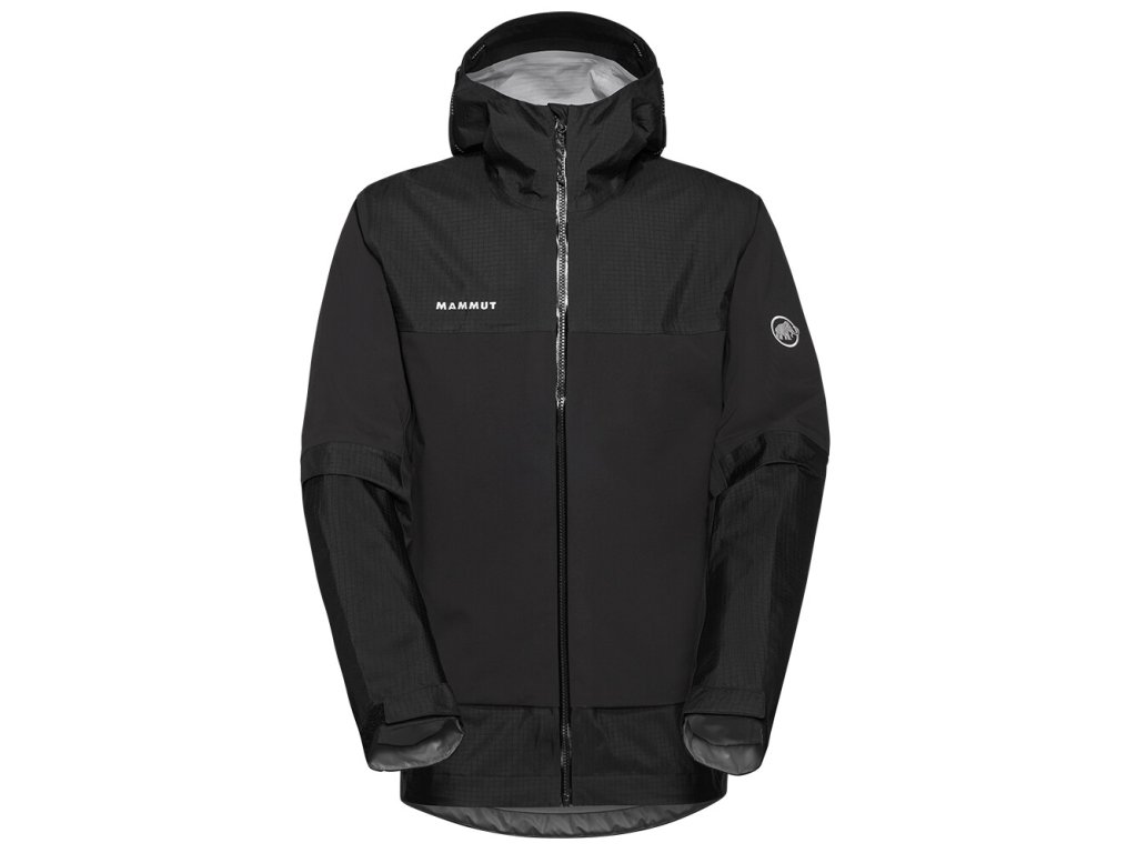 Bunda je vyrobena z třívrstvého materiálu Mammut DRY Tour. Díky tomu je nepromokavá, prodyšná a větruodolná. Zipová ventilace v podpaží umožní regulaci teploty při zvýšené fyzické aktivitě. Nastavitelná kapuce skvěle sedne. Předtvarované rukávy jsou doplněny o praktické nastavitelné manžety. Dvě zipové kapsy uchovají potřebné drobnosti. Vnitřní kapsa disponuje většími rozměry. Švy na ramenou jsou umístěny tak, aby nepřekážely při použití s batohem. Spodní lem je nastavitelný. Samozřejmostí je nepromokavý zip.