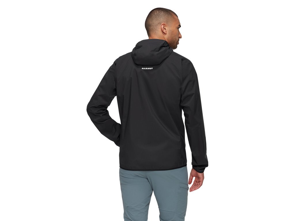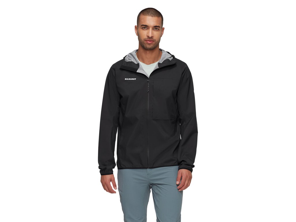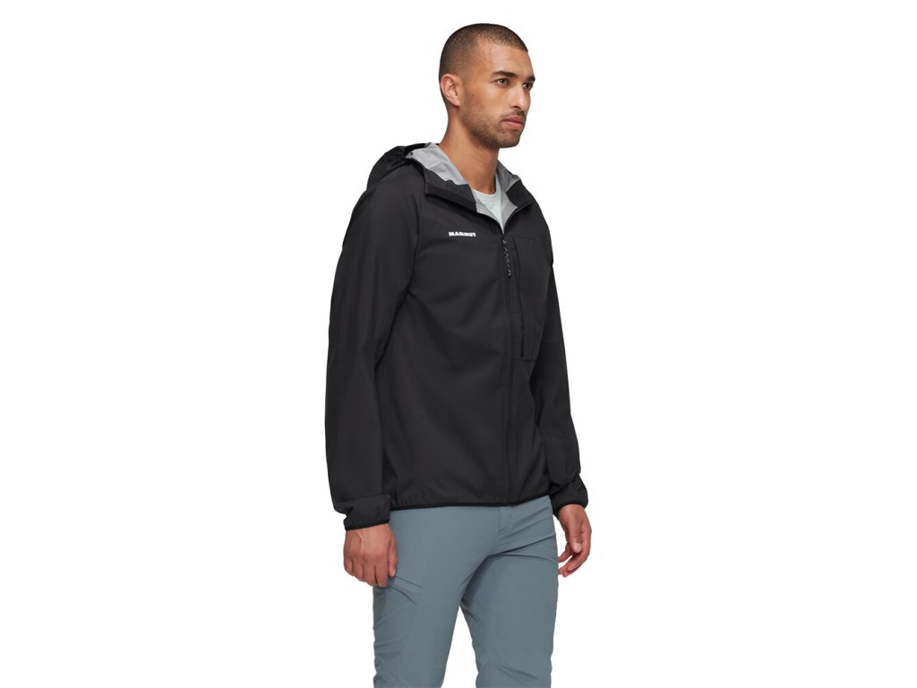 Bunda je vyrobena z membrány Mammut DRY Active. Díky tomu je nepromokavá, prodyšná a větruodolná. Patent na hrudi umožní otevření centrálního zipu a regulaci teploty při zvýšené fyzické aktivitě. Předtvarovaná kapuce skvěle sedne. Předtvarované rukávy jsou doplněny o elastické manžety. Vnitřní kapsa disponuje většími rozměry. Švy na ramenou jsou umístěny tak, aby nepřekážely při použití s batohem. Spodní lem je elastický. Bundu jednoduše sbalíte do hrudní kapsy.