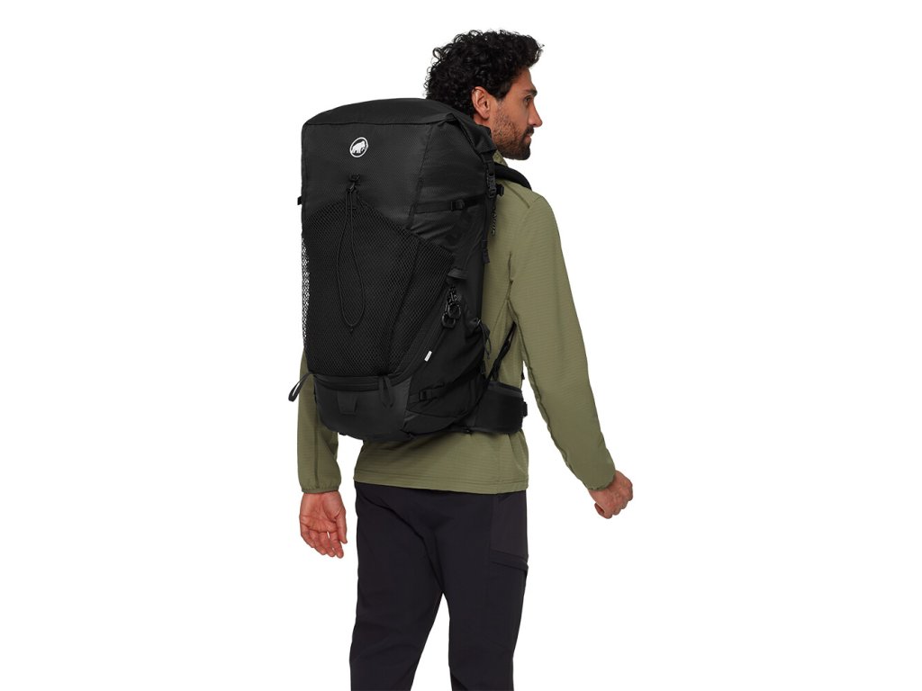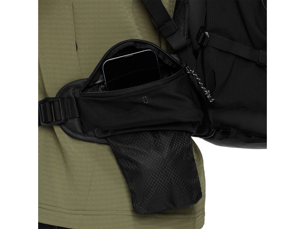 Do batohu se snadno dostanete pomocí roll top zavírání v horní části a velkého zipu ve spodní části. Díky rolování lze měnit objem batohu v rozmezí 50-60 litrů. Důležité předměty, jako láhve s vodou, jsou vždy na dosah díky síťovaným kapsám. Energetické tyčinky schováte do kapes na ramenních popruzích. A mobilní telefon? Ten má svojí rozkládací kapsičku na bederním pásu.