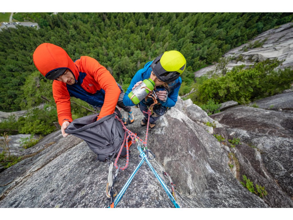 Použití recyklovaných materiálů odráží úsilí Mountain Equipment dodávat vysoce funkční produkty, které poskytují nejlepší možnou kombinaci vysokého výkonu, odolnosti a nízké ekologické stopy.