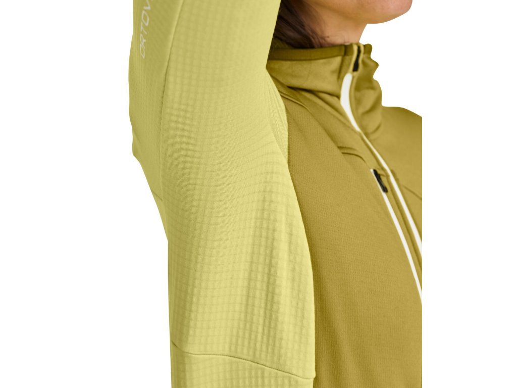 Mikina ORTOVOX MERINO FLEECE GRID HOODY W vyniká svou skvělou funkčností v těch nejextrémnějších podmínkách. Skoro nic neváží a díky vaflové struktuře a extra izolaci je velice teplá. Skvěle funguje jak v údolí, tak i při zimním lezení na vrcholcích hor. Je elastická, skvěle sedí a je velice odolná, takže je ideálním společníkem do hor.