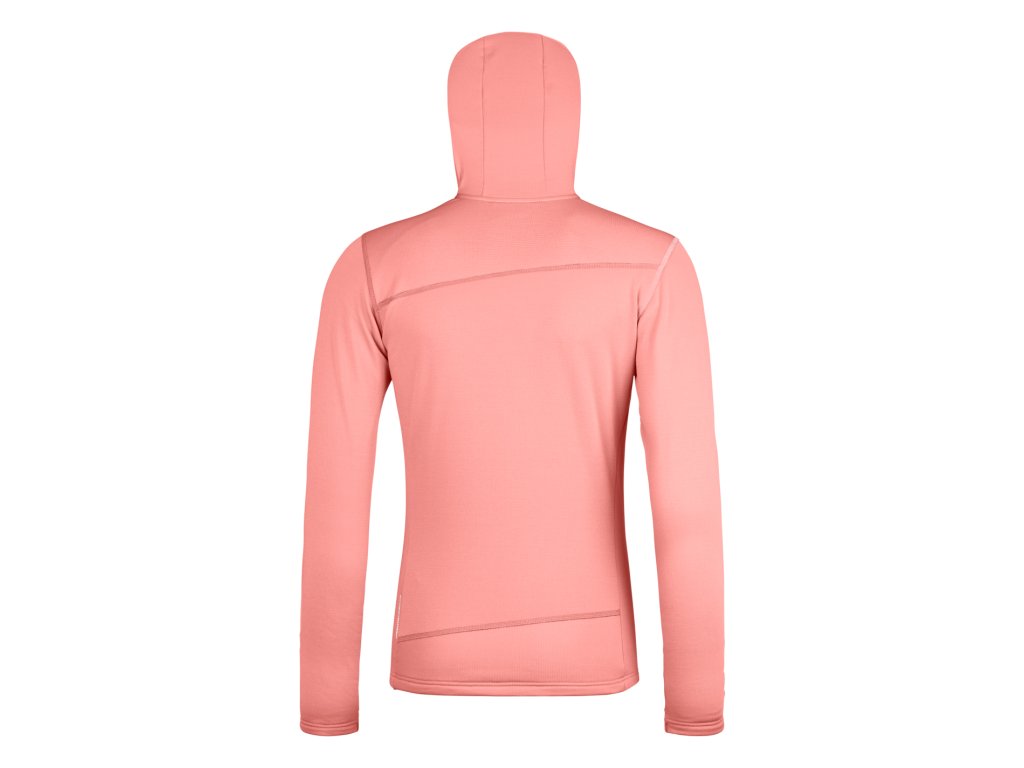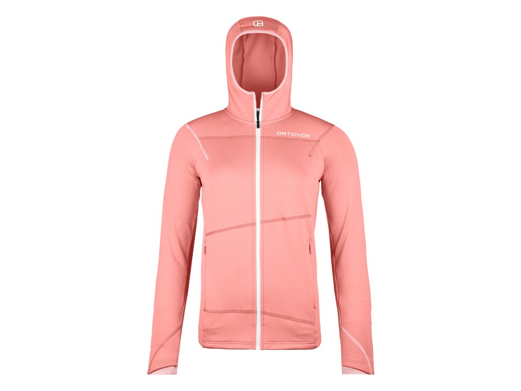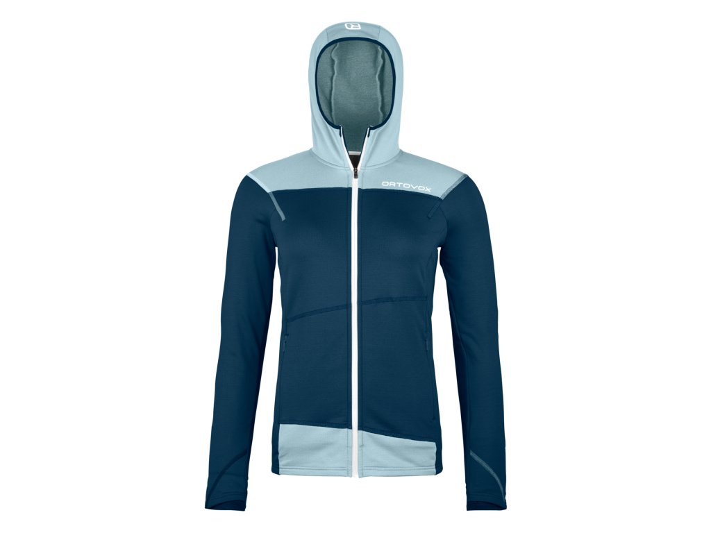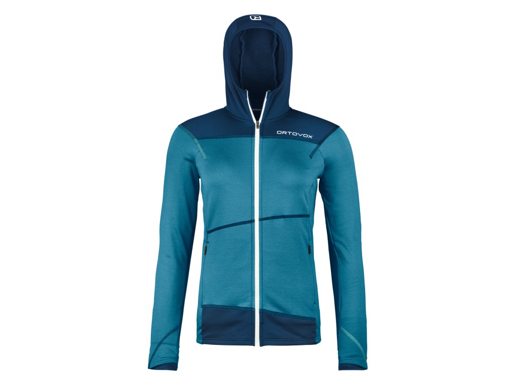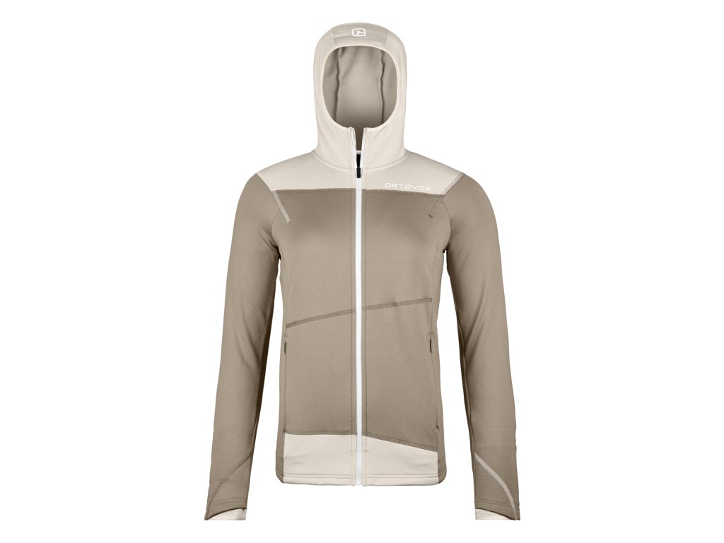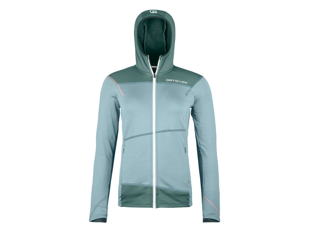 Dámská mikina s kapucí ORTOVOX FLEECE LIGHT HOODY W je dokonalý společník pro náročné i pohodové túry v horách. Hladký a strečový materiál na vnější straně mikiny snáze odolává oděru, zatímco hebká podšívka z nejkvalitnější merino vlny je úžasně lehká, má termoregulační schopnosti a odvádí pot, takže zůstaneš v suchu za každých okolností. Mikina má kapuci a velké kapsy, do kterých se snadno dostaneš i v lezeckém úvazku a s batohem na zádech.