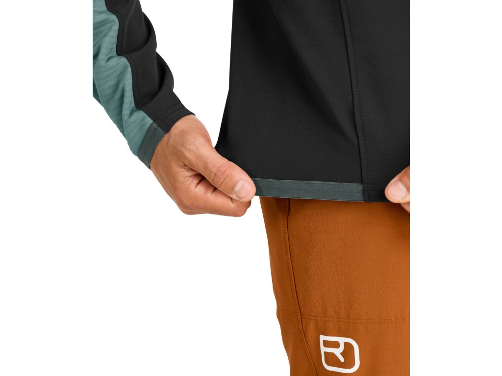 - Hlavní materiál MERINO FLEECE RIB - lehký, prodyšný, vysoce elastický a rychleschnoucí.