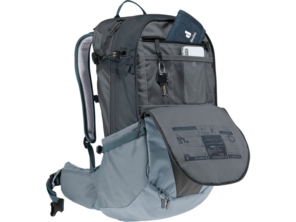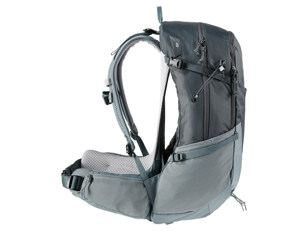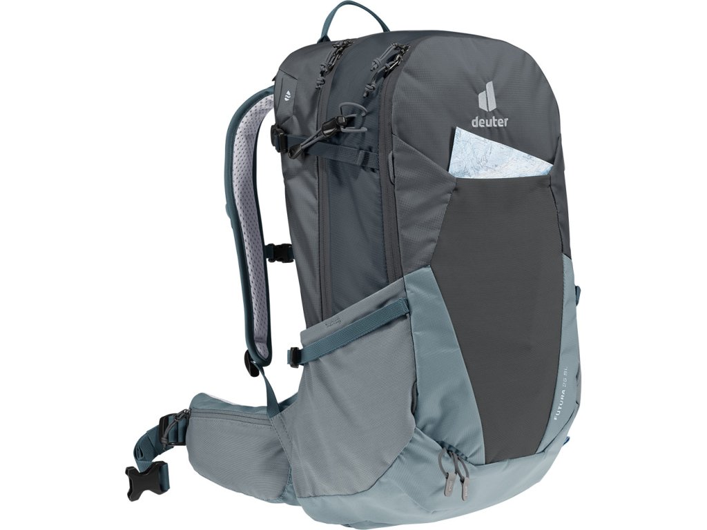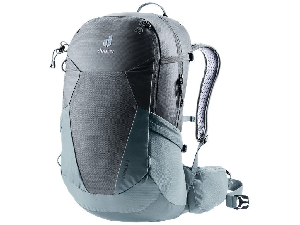Turistický dámský batoh Futura 25 SL značky deuter vám bude skvělým společníkem na vašich cestách za poznáním, ať už to budou ferraty, výlety do hor a nebo jen toulání po lese. Futura má síťku na zádech s polstry kolem páteře a perforaci na ramenních popruzích. Kovová výztuha se postará o rozložení váhy, kterou si na bedra naložíte. Přední elastickou kapsu na bundu oceníte při rozmarech počasí.