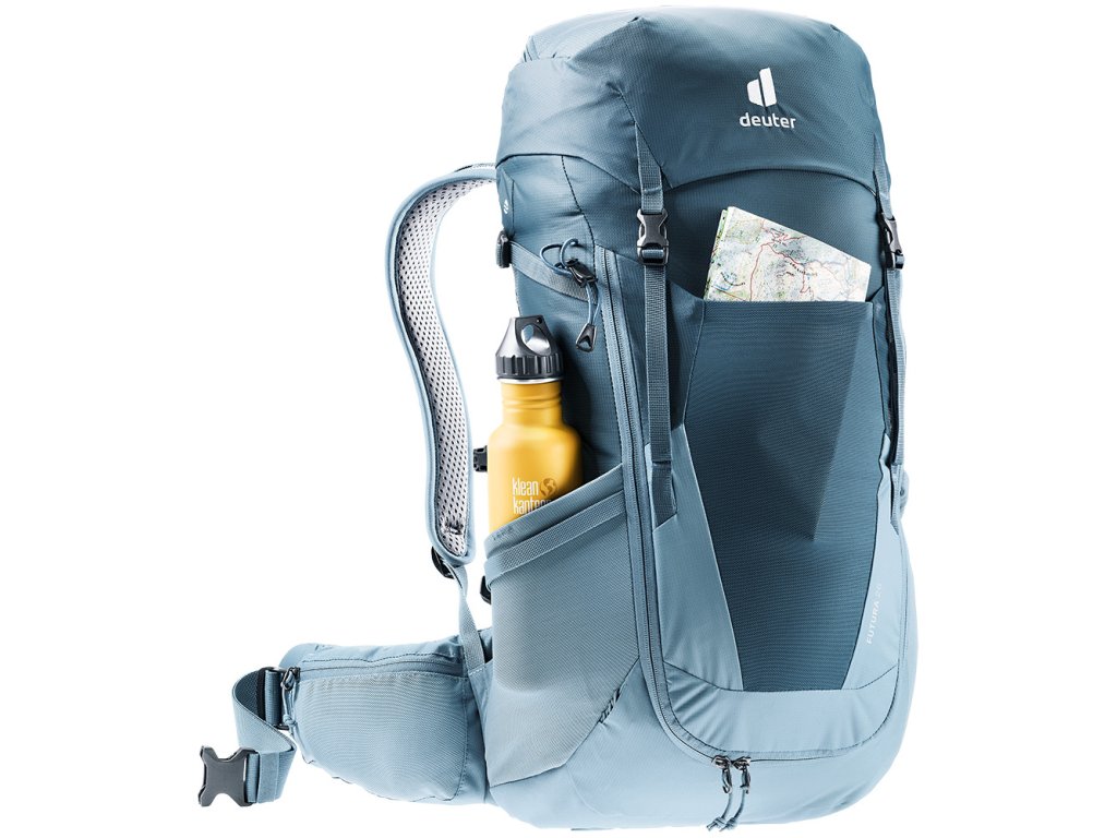 Turistický batoh Futura 26 značky deuter vám bude skvělým společníkem na vašich cestách za poznáním, ať už to budou ferraty, výlety do hor a nebo jen toulání po lese. Futura má síťku na zádech s polstry kolem páteře a perforaci na ramenních popruzích. Kovová výztuha se postará o rozložení váhy, kterou si na bedra naložíte. Přední elastickou kapsu na bundu oceníte při rozmarech počasí.