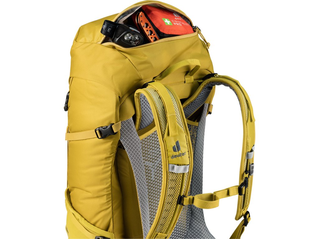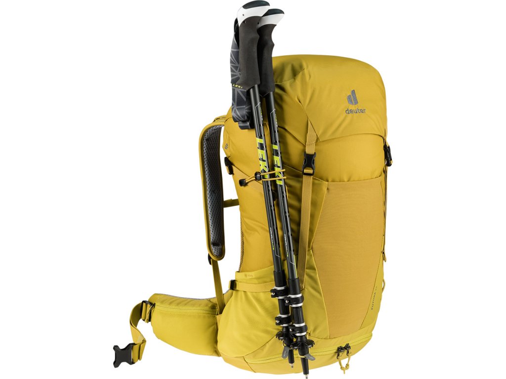 Turistický batoh Futura 32 značky deuter vám bude skvělým společníkem na vašich cestách za poznáním, ať už to budou ferraty, výlety do hor a nebo jen toulání po lese. Futura má síťku na zádech s polstry kolem páteře a perforaci na ramenních popruzích. Kovová výztuha se postará o rozložení váhy, kterou si na bedra naložíte. Přední elastickou kapsu na bundu oceníte při rozmarech počasí.