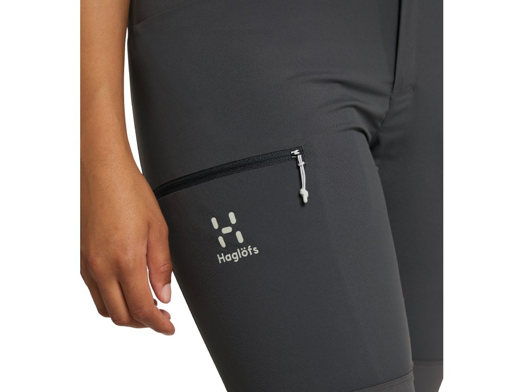 - 2 přední kapsy + 1 kapsička na zip na stehně