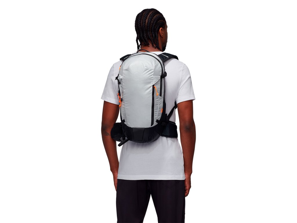 Batoh Lithium 15 od švýcarské značky Mammut je nejmenší z osvědčené rodiny batohů s vysokou funkčností. Je vyroben z recyklovaného materiálu a má voděodolnou úpravu PFC-free. Velmi lehké a prodyšné popruhy zaručují pohodlné nošení. Vzduchové průduchy mezi zádovým systémem ze 3D EVA pěny zaručují dobrou ventilaci. Bederní pás obsahuje kapsu pro váš telefon, boční síťované kapsy pohodlně využijete i za chůze. Nechybí ani pláštěnka na batoh.