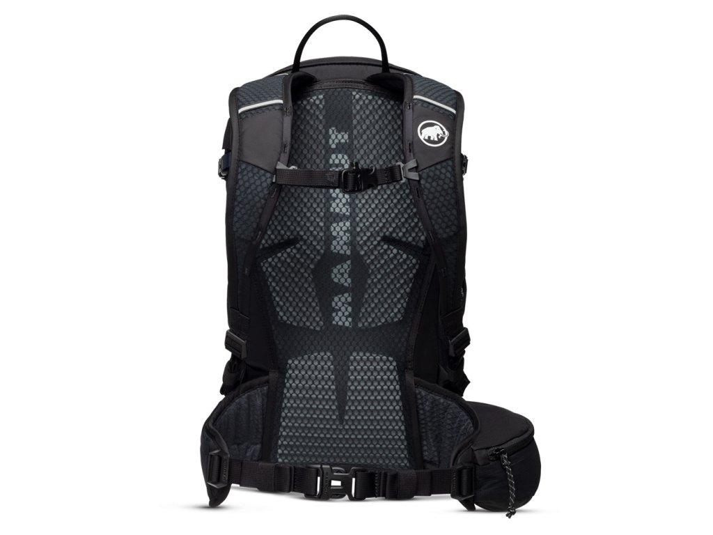 Dámský lehký turistický batoh Lithium 25 od švýcarské značky Mammut je vyroben z recyklovaného materiálu a má voděodolnou úpravu. Velmi lehké a prodyšné popruhy zaručují pohodlné nošení. Vzduchové průduchy mezi zádovým systémem z 3D EVA pěny zaručují dobrou ventilaci. Bederní pás obsahuje kapsu pro váš telefon, a pokud byste kapsu nevyužili, můžete jí jednoduše odepnout. To stejné platí i pro pláštěnku na batoh. Síťované boční kapsy můžete pohodlně využívat i za chůze.