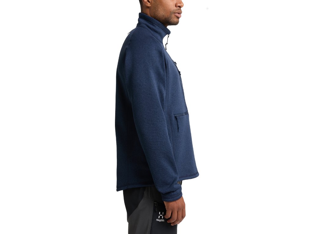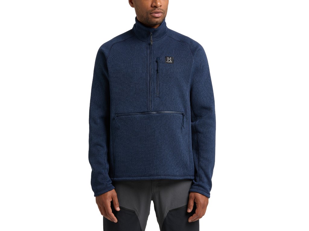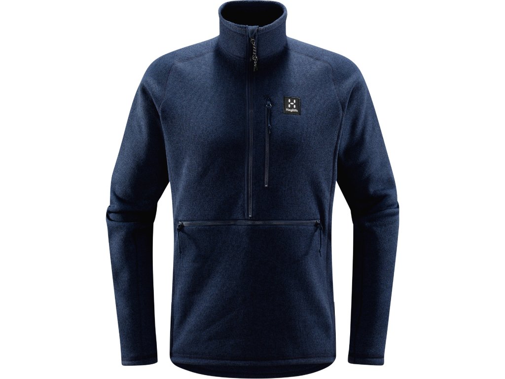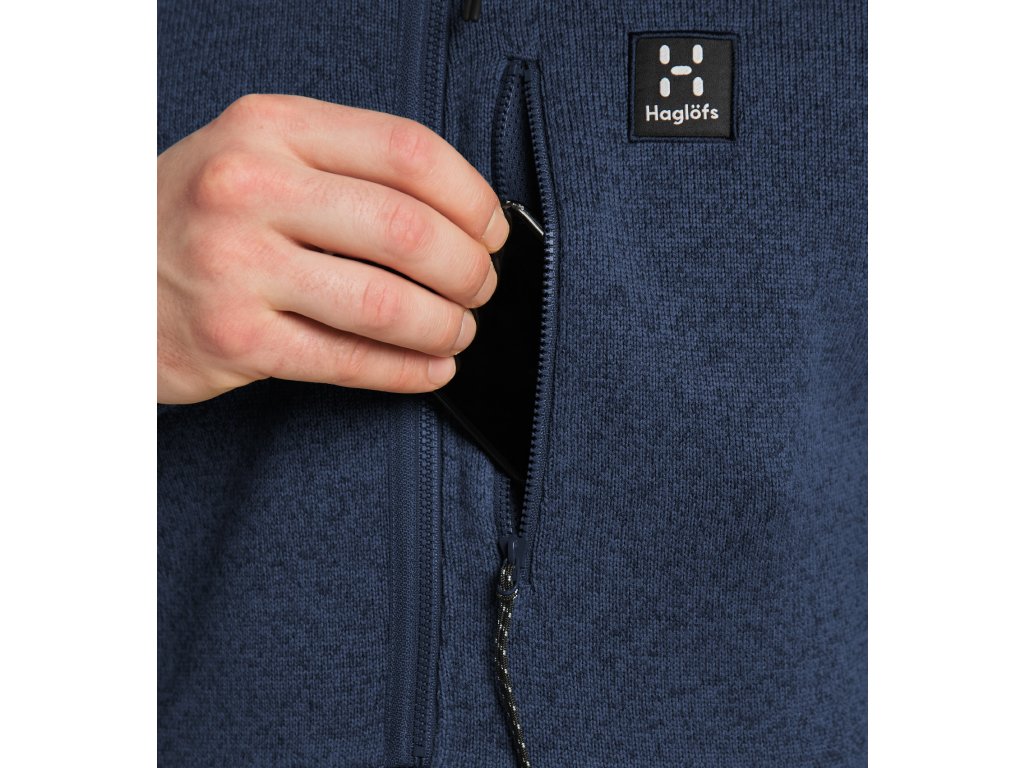 Pánská extra teplá mikina vyšší gramáže. Vnější stranu tvoří pletenina, která je uvnitř zateplená fleecem poskytujícím tepelný komfort a pohodlí. Tento model není celorozepínací, má pouze krátký zip na předním díle.