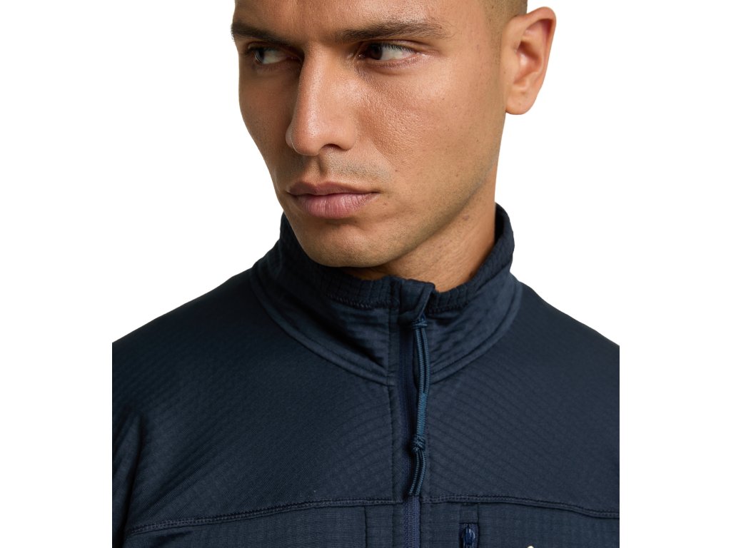 Pánská technická mikina střední gramáže. Tento model spadá do kategorie ROC, což je kolekce určená pro horolezecké aktivity. Tento model je z měkkého recyklovaného polyesteru - Polartecu Power Grid, který má uvnitř patentovanou kostičkovanou strukturu zaručující tepelný komfort a prodyšnost.