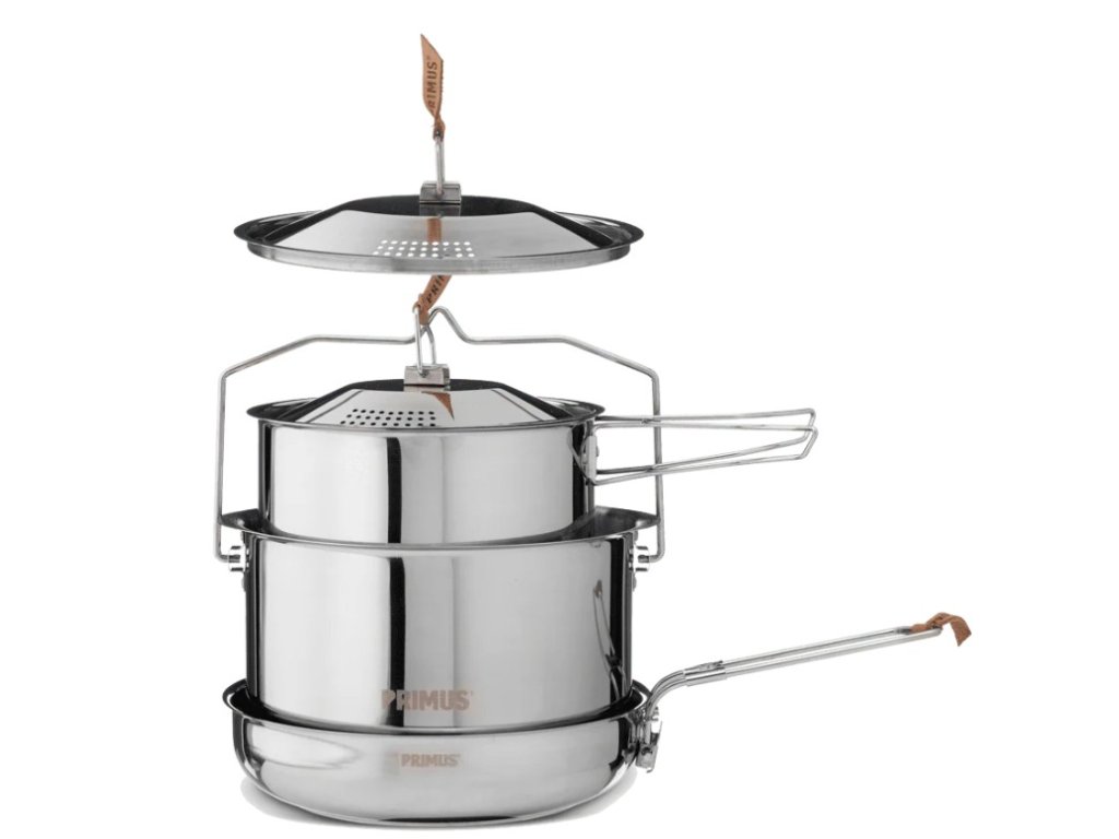 PRIMUS CampFire Cookset S.S. Large je robustní sada hrnců a pánví z nerezové oceli pro vaření a to i na otevřeném ohni. Perfektní sada hrnců a pánví pro vaše kempovací kuchařské dobrodružství.