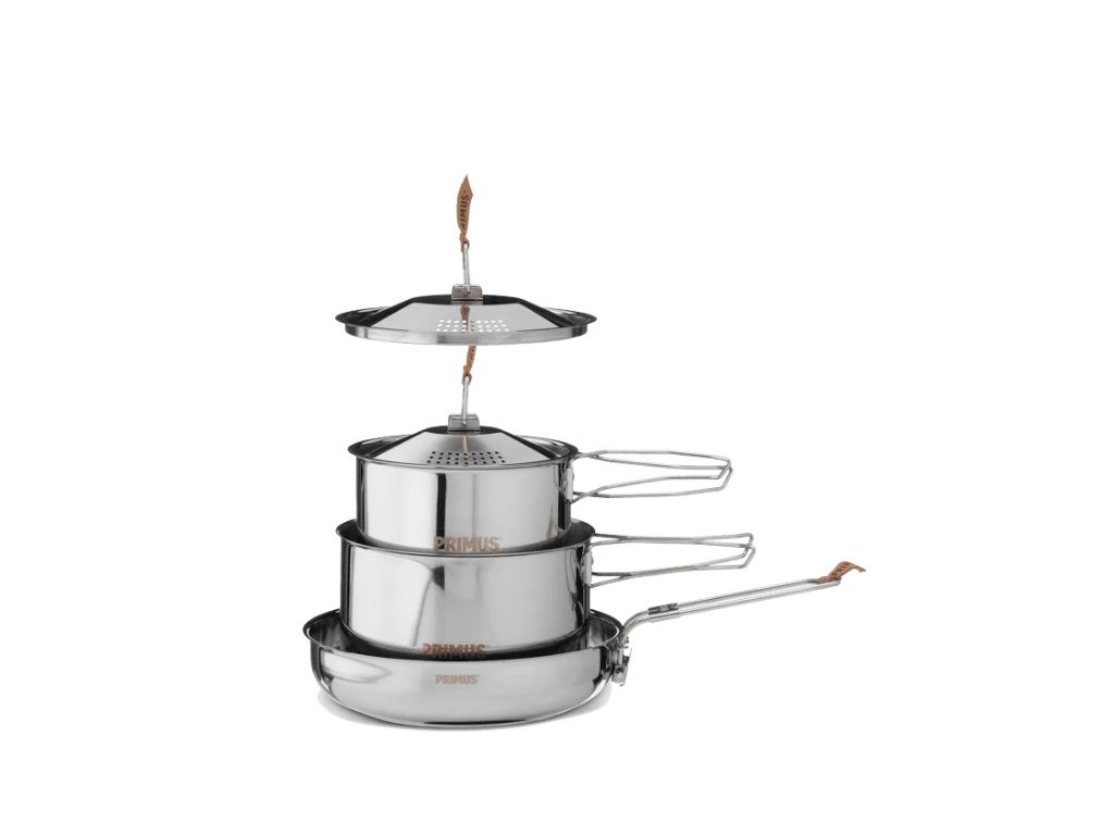 PRIMUS CampFire Cookset S.S. Small je robustní sada hrnců a pánví z nerezové oceli pro vaření a to i na otevřeném ohni. Perfektní sada hrnců a pánví pro vaše kempovací kuchařské dobrodružství.
