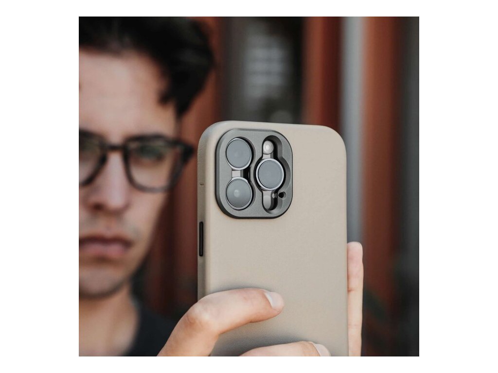 Kožené pouzdro určené k ochraně vašeho fotoaparátu iPhone. Patentovaný hliníkový držák objektivu, který slouží jako ochrana fotoaparátu a bezproblémové připojení k objektivům a filtrům SANDMARC.