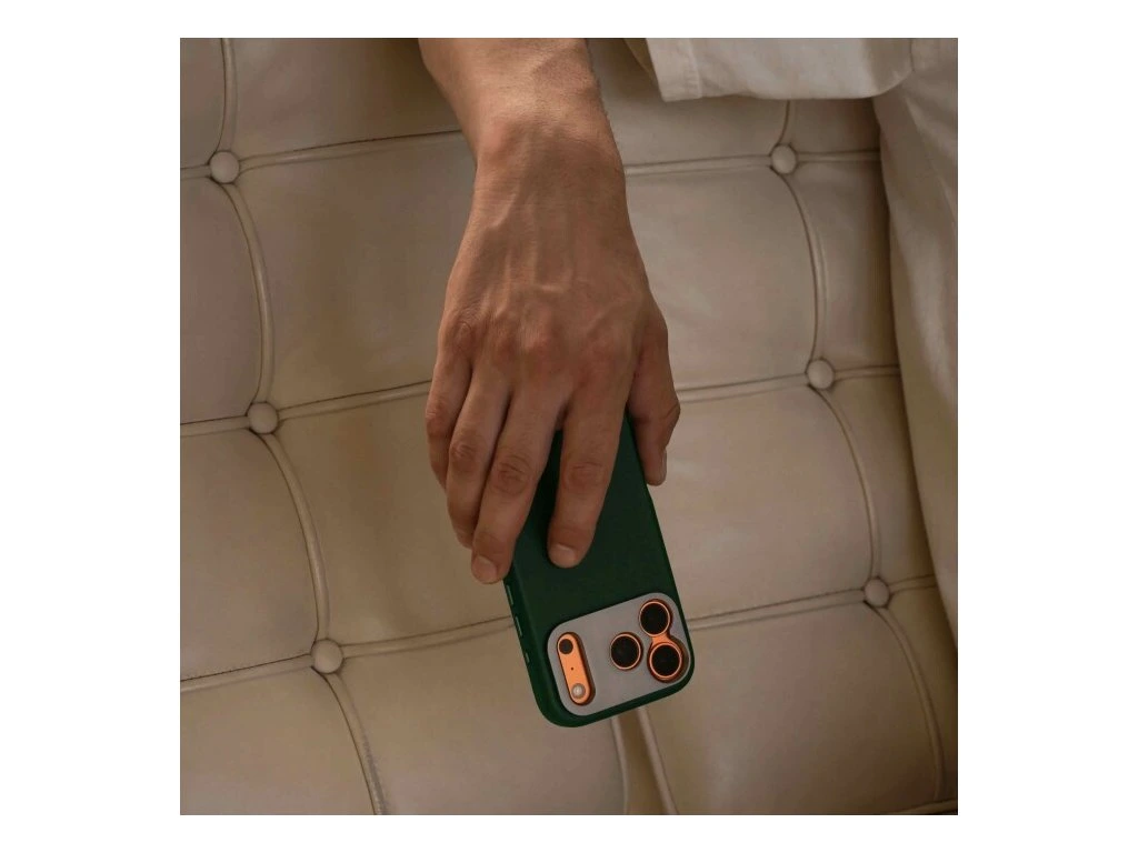 Vyrobena z lícové kůže s patentovaným hliníkovým držákem, který poskytuje ochranu fotoaparátu a bezpečné připojení k objektivům a filtrům SANDMARC. Je vybavena kovovými tlačítky, nabíjením MagSafe a tlačítkem pro ovládání fotoaparátu.