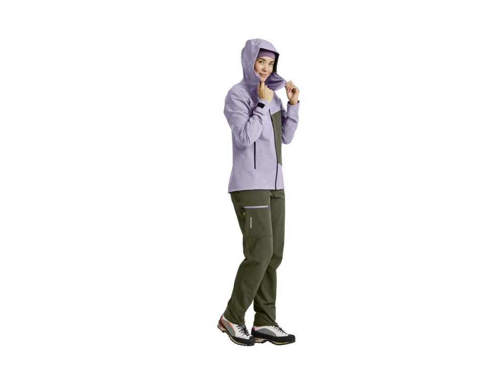 Extrémně odolná, strečová dámská softshellová bunda s kapucí. Je odolná vůči vodě i větru a je ideální pro vysokohorskou turistiku a alpinismus.