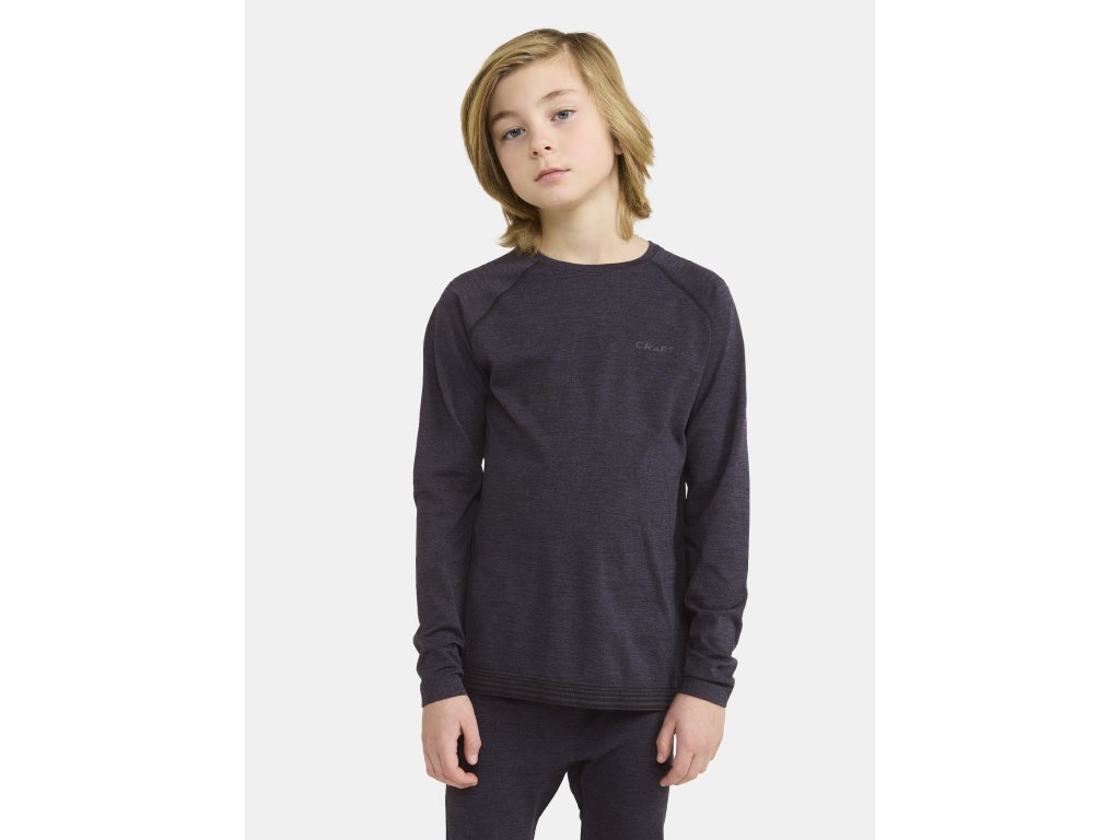 Set dětského trika a spodků CRAFT CORE Dry Active Comfort určený pro širokou škálu sportovních aktivit v mírně chladném až chladném počasí. Díky módnímu decentnímu designu je prádlo vhodné také na běžné nošení.