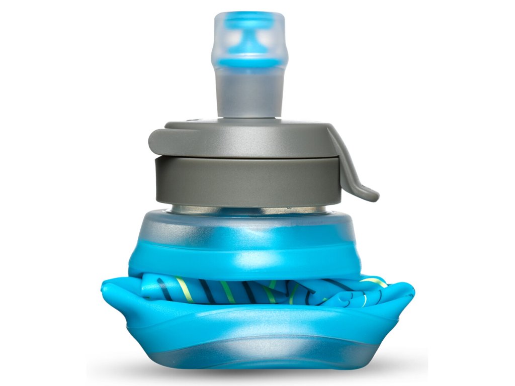 Minimalistická láhev pro běžce Skyflask speed 350 od značky Hydrapak, o které při běhu nebudete ani vědět. Díky nastavitelnému řemínku se snadno drží v ruce a měkký materiál umožní po vypití nápoje její úplné složení, takže se vám vejde do kapsy. Těsnění kolem náustku zabraňuje nepříjemnému kapání po napití.