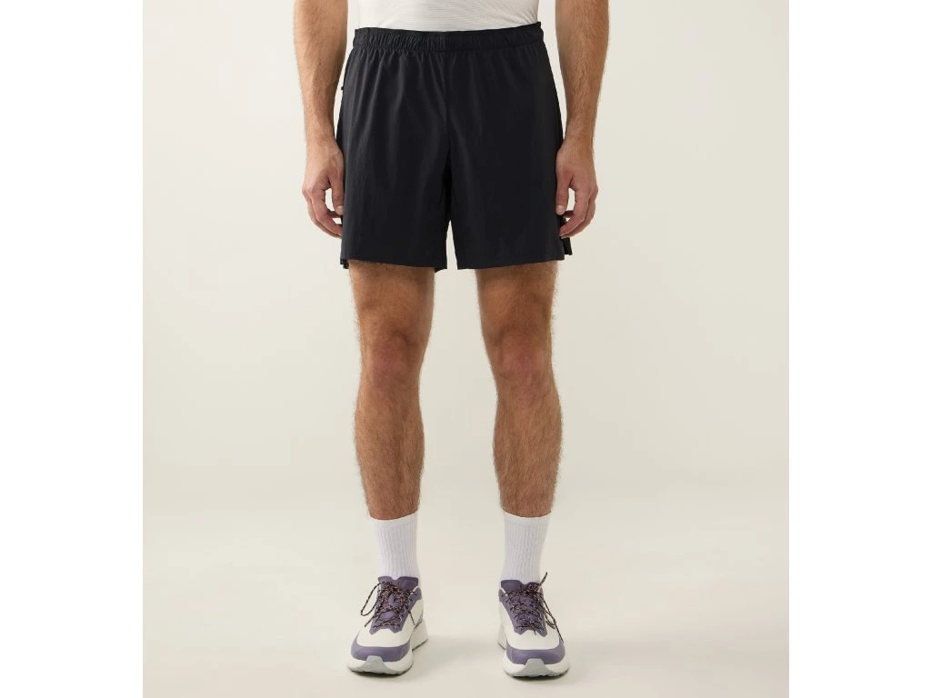 Pánské šortky atletického střihu spadající do L.I.M (Less is more) kolekce jsou určené na vysoce aerobní aktivity v horkém počasí. Jsou maximálně lehké a prodyšné a sbalitelné. Materiál, ze kterého jsou vyrobeny je pružný, rychleschnoucí a velmi příjemný na dotek. Pas je řešený stažením do pružné gumky plus šnůrka na dodatečné utažení. Po bocích nohavic jsou rozparky pro maximální komfort a volnost pohybu.