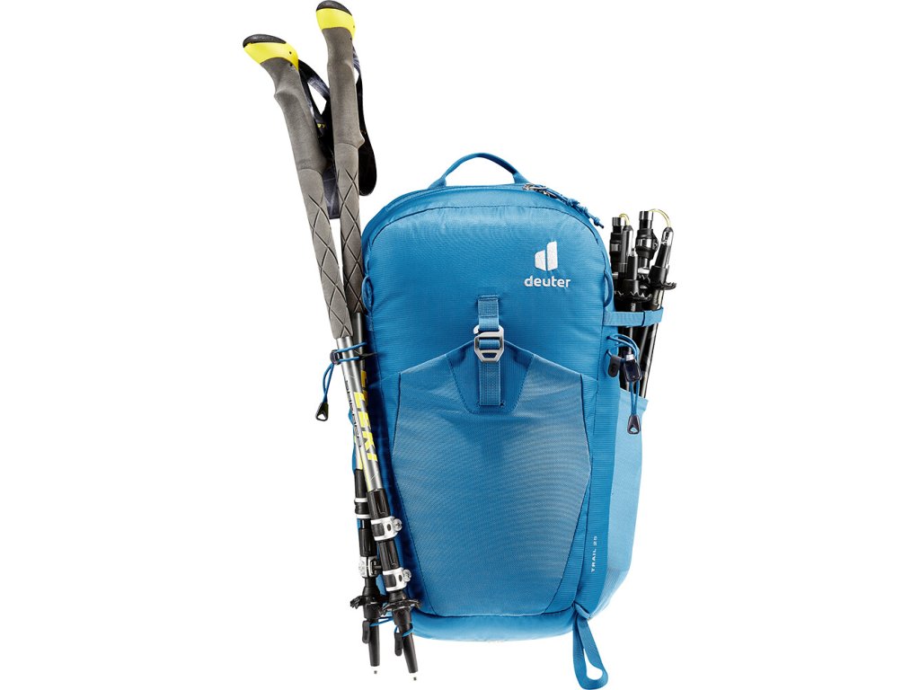 Hlavní komora batohu Trail 25 pojme vše potřebné na den pobytu v horách. Otevírá se dvoucestným zipem, takže se krásně a rychle dostanete k obsahu. Uvnitř hlavní komory se nachází kapsa pro hydrovak. Batoh disponuje také dvěma strečovými postranními kapsami, třeba na láhev s vodou nebo rukavice. V přední části batohu je velká strečová kapsa, do které se pohodlně schová bunda nebo pláštěnka. Shora najdete malou kapsu, která bezpečně uloží drobotinu nebo třeba elektroniku. Batoh Trail 25 dále disponuje stahovacími šňůrkami na uchycení trekových holí nebo na cepín, očkama pro nosič helmy, kompresními popruhy, pokud je jich potřeba a vychytanými smyčkami na ramenních popruzích, do kterých cvaknete ruční ferratové karabiny.