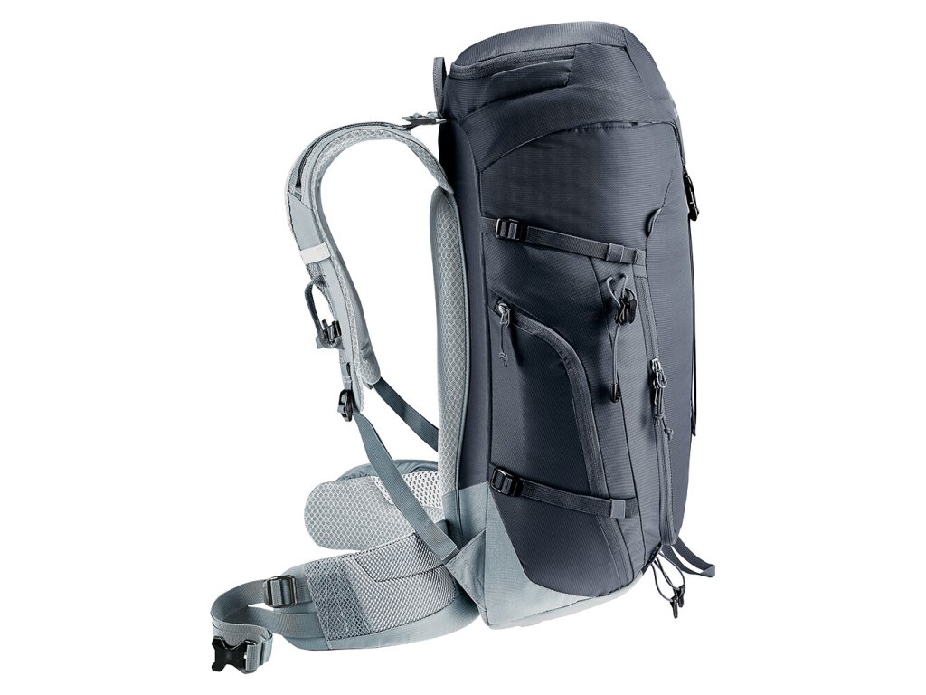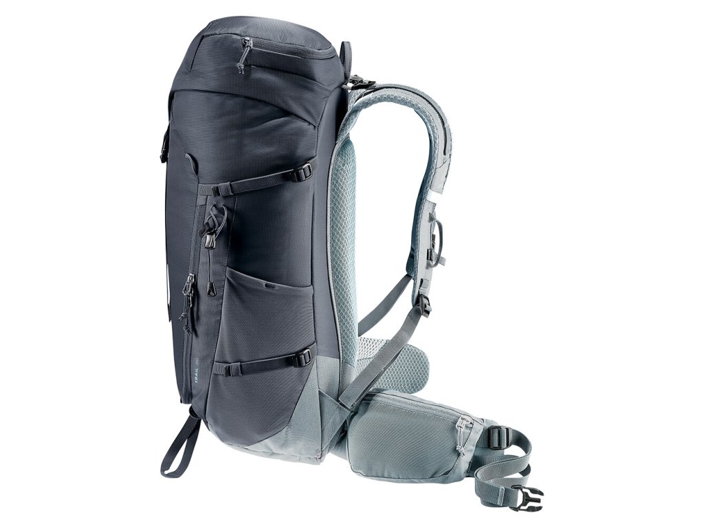 Pro milovníky horských sportů a ferratového lezení přichází deuter s vychytaným batohem Trail 30. Tento batoh oceníte především pro dobrou stabilitu, skvěle totiž sedí na zádech díky ověřenému zádovému systému Airstripes. Tento systém stojí na flexibilním rámu Delrin® ve tvaru U, který rovnoměrně rozkládá váhu. Dva pruhy tvarované pěny s prodyšnou síťovinou se minimálně dotýkají zad a umožňují tak maximální odvětrávání díky komínovému efektu. V součinnosti s pohyblivými perforovanými ramenními popruhy, nastavitelným bederním pásem a hrudním popruhem vám batoh Trail 30 přilne na záda, jako by byl jejich součástí a přesto budete v suchu a pohodlí i při rychlém postupu.
