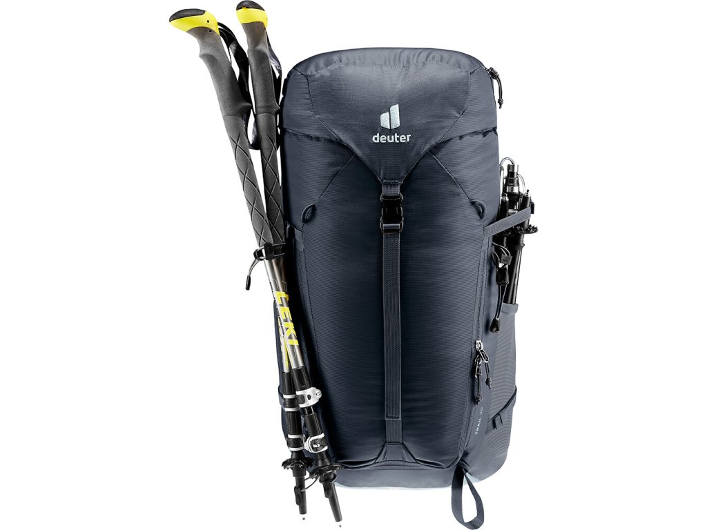 Hlavní komora batohu Trail 30 pojme vše potřebné na den pobytu v horách. Je dostupná shora pod víkem s vnitřní a vnější kapsou a také z přední strany díky širokému rozepínání na zip, což zrychluje přístup k obsahu. Uvnitř hlavní komory se nachází kapsa pro hydrovak. Batoh disponuje také meshovou postranní kapsou, třeba na láhev s vodou nebo rukavice. Na druhé straně se schovává kapsa na zip, která bezpečně uloží drobotinu nebo třeba elektroniku. Batoh Trail 30 dále disponuje stahovacími šňůrkami na uchycení trekových holí nebo na cepín, očkama pro nosič helmy, kompresními popruhy, pokud je jich potřeba a vychytanými smyčkami na ramenních popruzích, do kterých cvaknete ruční ferratové karabiny.