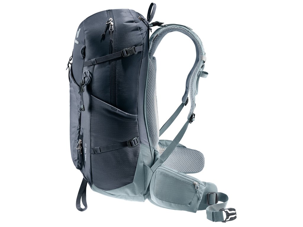 Hlavní komora batohu Trail Pro 33 pojme vše potřebné na jeden či dva dny pobytu v horách. Otevírá se dvoucestným zipem, takže se krásně a rychle dostanete k obsahu. Uvnitř hlavní komory se nachází kapsa pro hydrovak. Batoh disponuje také dvěma strečovými postranními kapsami, třeba na láhev s vodou nebo rukavice. V přední části batohu je velká strečová kapsa, do které se pohodlně schová bunda nebo pláštěnka. Shora najdete malou kapsu, která bezpečně uloží drobotinu nebo třeba elektroniku. Batoh Trail Pro 33 dále disponuje stahovacími šňůrkami na uchycení trekových holí nebo na cepín, očkama pro nosič helmy, kompresními popruhy, pokud je jich potřeba a vychytanými smyčkami na ramenních popruzích, do kterých cvaknete ruční ferratové karabiny. Ve spodu batohu se nachází samostatná kapsa na spacák.