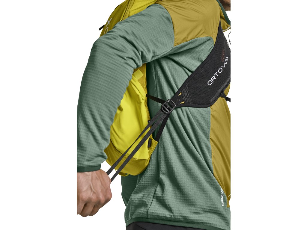 Ultralehký, přizpůsobivý technický batoh TRAVERSE LIGHT 15 skvěle sedí na zádech a dokonale obejme tvé tělo, což z něj dělá ideálního společníka pro rychlý pohyb v horách. Zádový systém AIRVENT BACK SYSTEM poskytuje dobrou cirkulaci vzduchu a dostatek pohodlí při nošení. Na ramenních popruzích je ve třech kapsách místo pro 500 ml měkkou láhev na vodu, mobilní telefon a tyčinku. Helmu a hůlky lze na batoh připevnit během okamžiku.