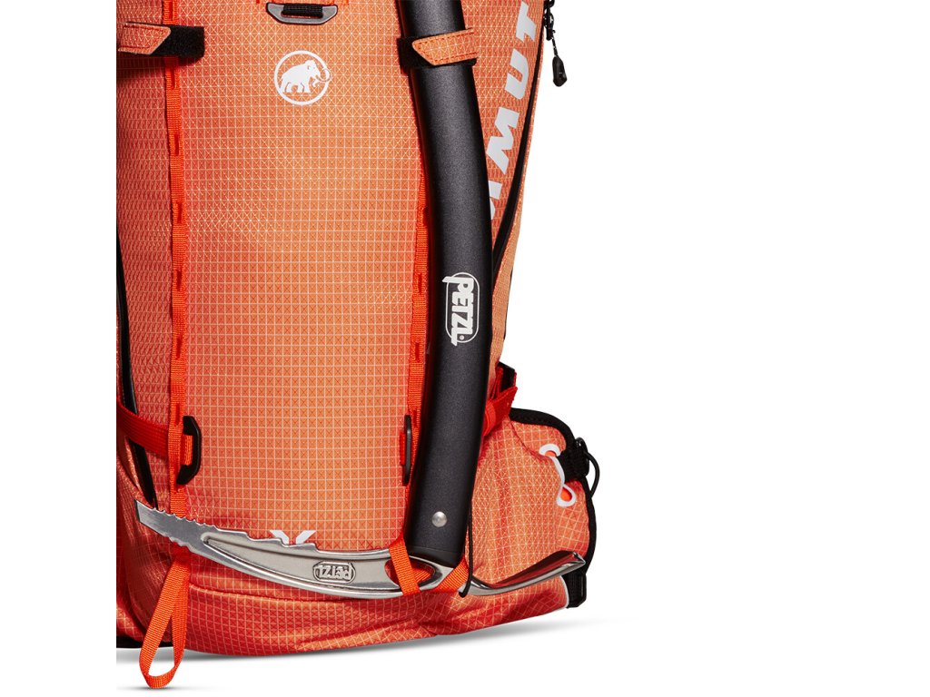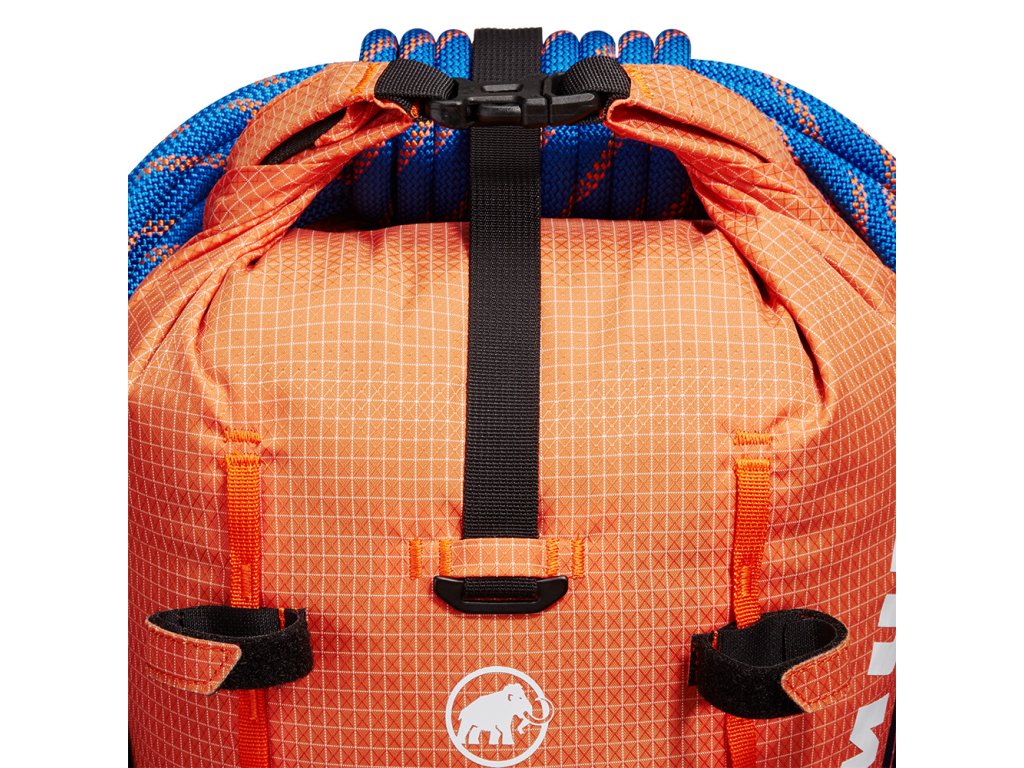Tento krasavec se zavírá pomocí rolovacího límce a nabízí tedy možnost vrchního plnění, ale v záloze má ještě rychlý přístup z boku na zip. To uvítáte hlavně, když začne pršet, protože se ke své nepromokavé bundě dostanete během sekundy. A ani o batoh nemusíte mít obavy, je voduodpudivý a navíc i odolný proti oděru. Oblíbíte si i různé držáky, ať na lahve s pitím, trekové hůlky či cepíny.