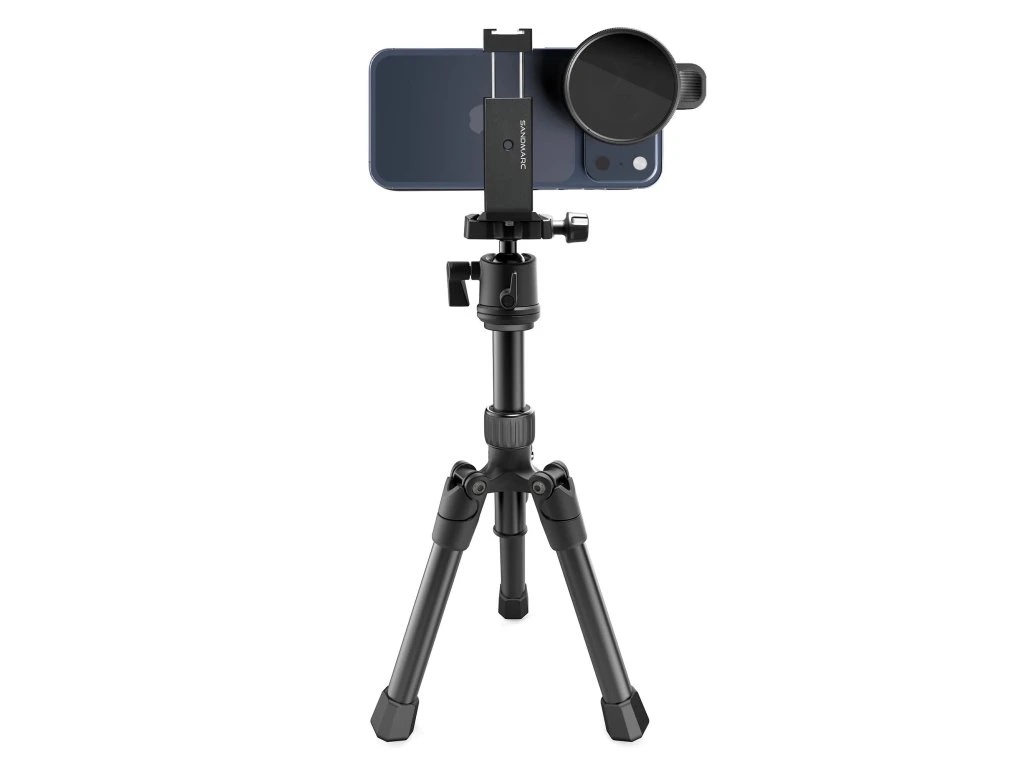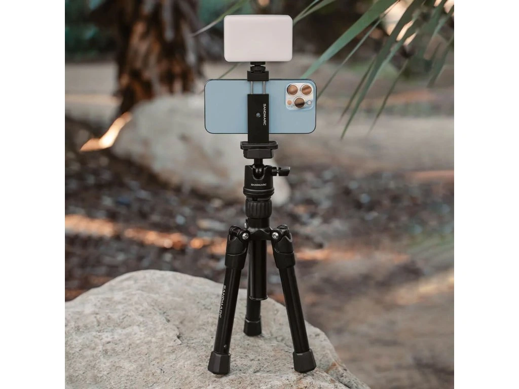 Plně vybavený a průmyslově vyrobený stativ vyrobený pro iPhone.