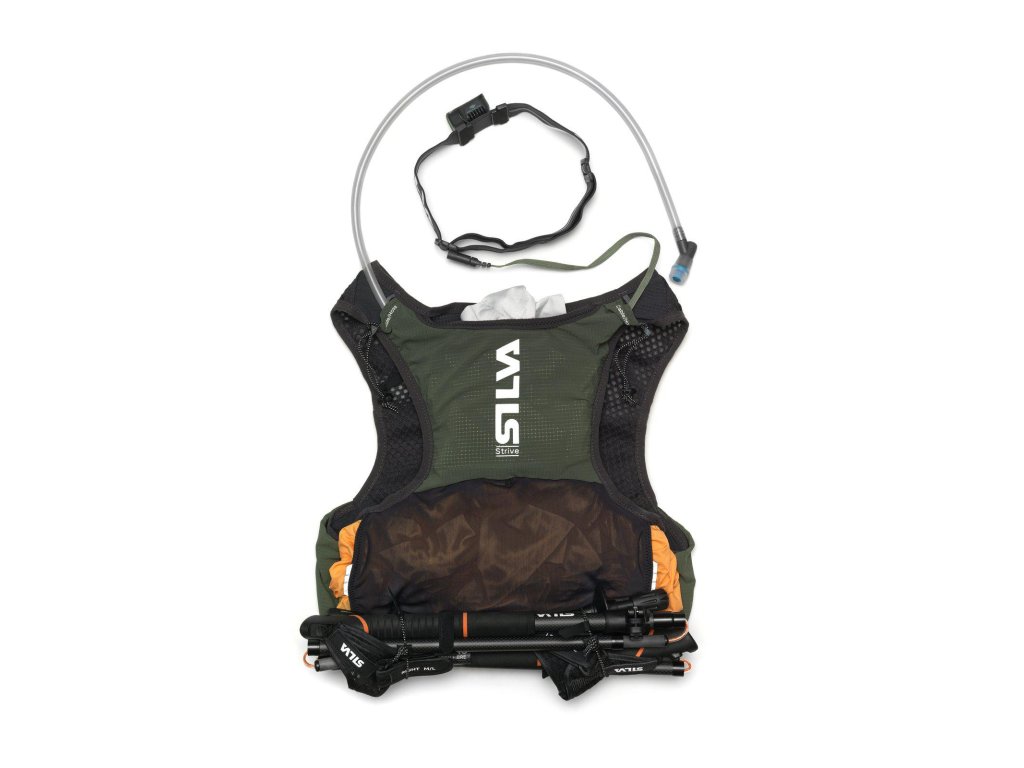 Vesta Silva Strive 5 je aktualizovanou verzí bestselleru Strive Light 5, je o 24% lehčí, má vylepšený střih a materiály z kterých je vyrobena jsou stejné jako u vest Strive Fly a Strive 10 - lehkého ripstop nylonu a prodyšné síťoviny. Ramenní popruhy jsou vypolstrovanější než u Strive Fly a do kapes lze umístit opět 2x500ml měkkou láhev, na zip uzavíratelné jsou u této verze kapsy dvě, háček na klíče, píšťalka a reflexní prvky jsou zde také. V zádové části jsou kapsy dvě, spodní podélná je stejná jako u vest Strive Fly a Strive 10, hlavní zádová kapsa má dva vývody na kabel čelovky nebo hadici od hydratačního vaku, pro fixaci baterie je určena malá kapsa uvnitř. Hole lze připevnit pomocí pružných regulovatelných poutek, nebo lze hole umístit do vaku Silva Quiver, který umožňuje jednodušší odkládání / odnímání holí z vesty při závodech – vak lze dokoupit.