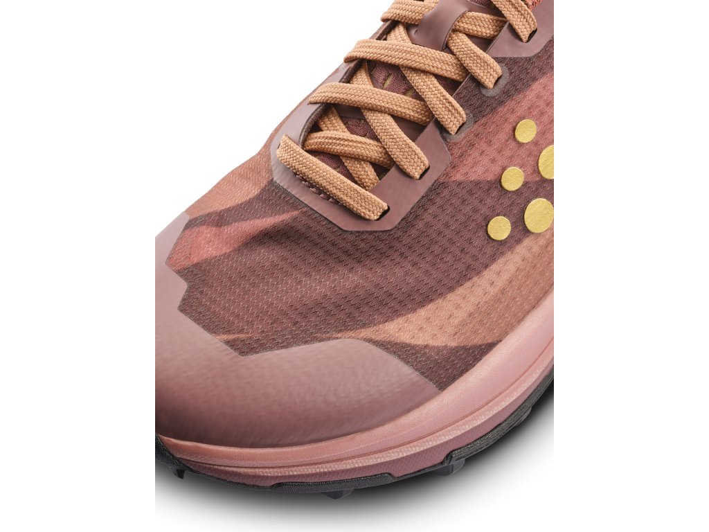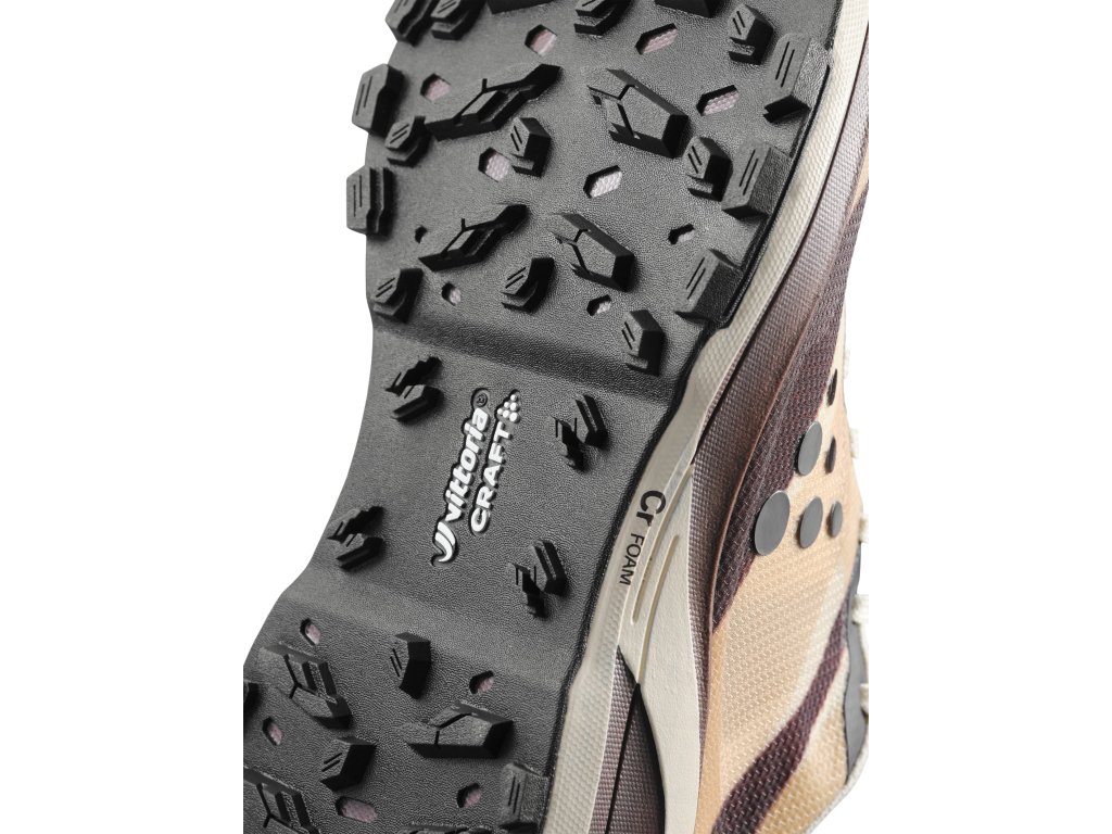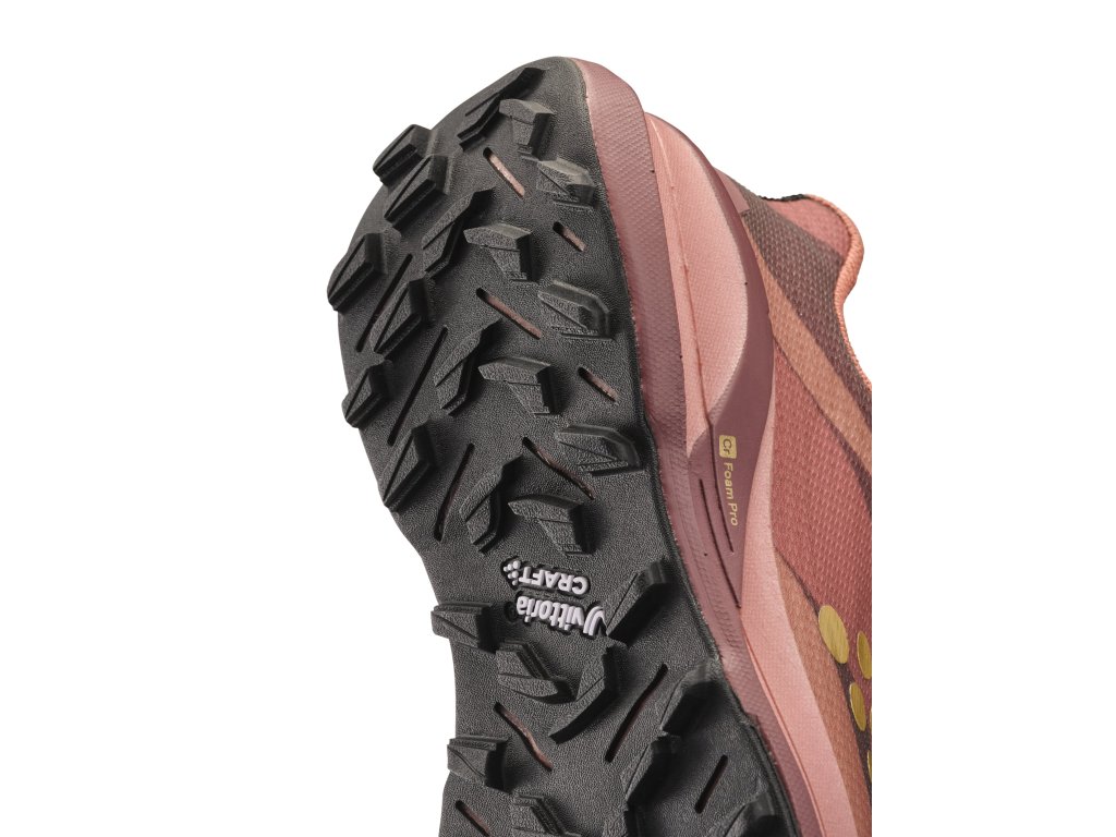 Dámská trailová bota CRAFT Pure Trail Pro cílí na ambiciózní trailové běžkyně, které hledají maximální rychlost, stabilitu a zároveň tlumení. Tato bota využívá novou pěnu v mezipodešvi Cr Foam Pro™. Ta kombinuje dusíkovou pěnu s Pebaxem (15 %), což vytváří skvělou kombinaci vysoké stability, optimální míry tlumení a maximální síly do odrazu. To vše při zachování minimální váhy. Podešev vytvořená ve spolupráci se společností Vittoria využívá směs HyperGrip™, která zajistí jistý grip na jakémkoliv povrchu. Svršek z odolného polyesterového ripstopu, zpevněný TPU pro větší odolnost, je navržen pro ty, kteří hledají dobrodružství a výkon. Bota byla důkladně testována běžci z Craft Elite Run týmu, kteří garantují že obstojí i v nejnáročnějších trailových podmínkách, a to při zachování pohodlí a stability.