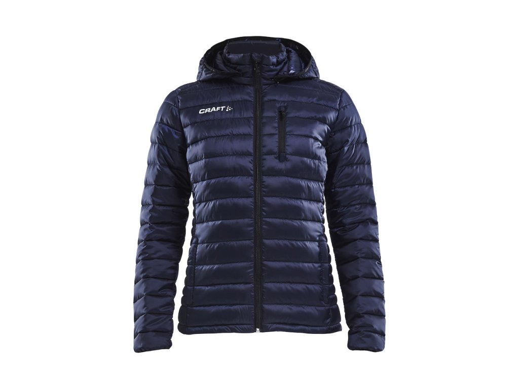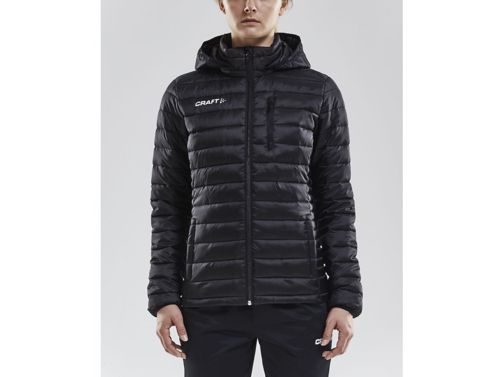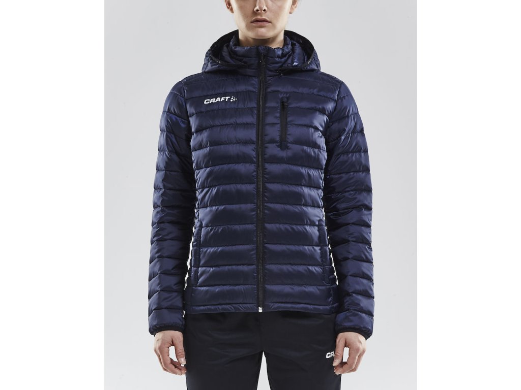 Dámská prošívaná bunda s kapucí CRAFT Isolate zateplená dutým vláknem. Je určena jak pro zahřátí před nebo po závodě, tak pro každodenní nošení.