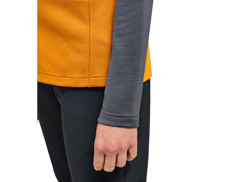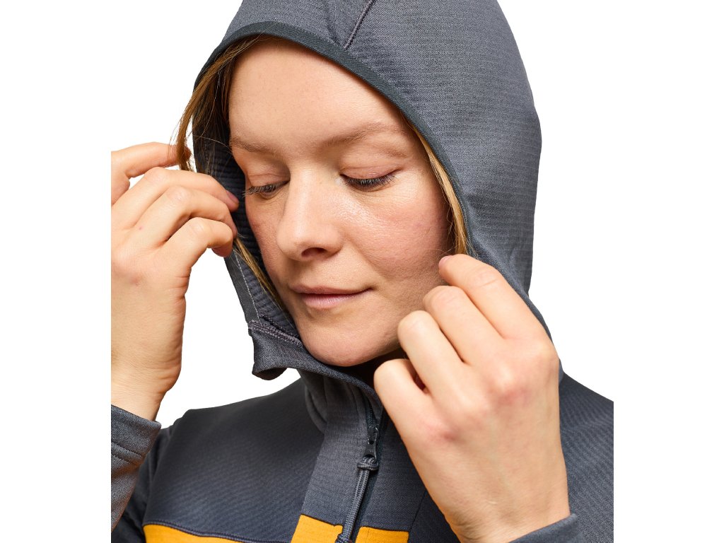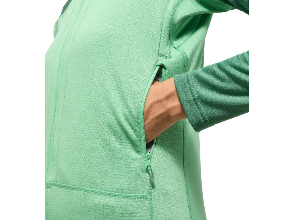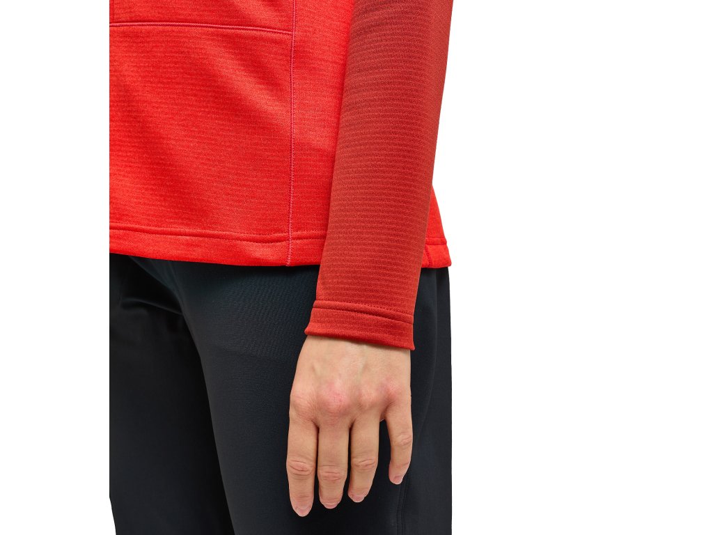 Dámská technická mikina střední gramáže. Tento model spadá do kategorie ROC, což je kolekce určená pro horolezecké aktivity. Tento model je z měkkého recyklovaného polyesteru, který je strečový a prodyšný.