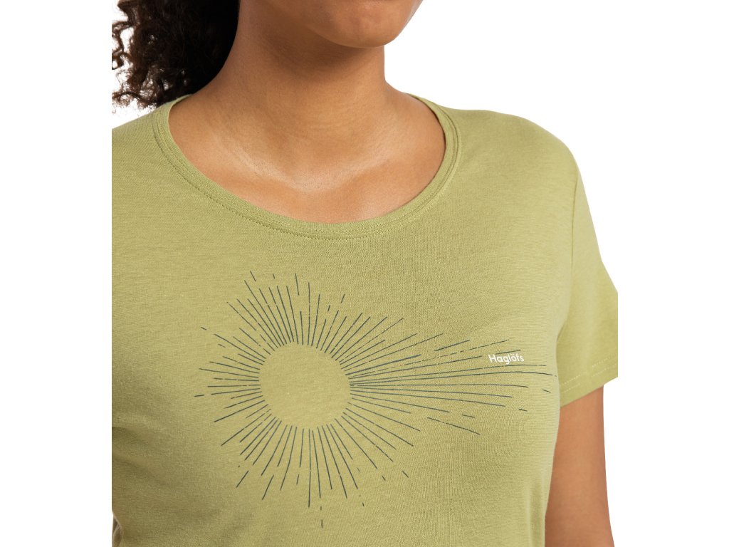 Dámské mnohoúčelové tričko s krátkým rukávem, klasického rovného střihu. Vyrobené z organické bavlny a konopí, oživené atraktivním potiskem na přední části. Skvělá volba pro každý všední i nevšední den.